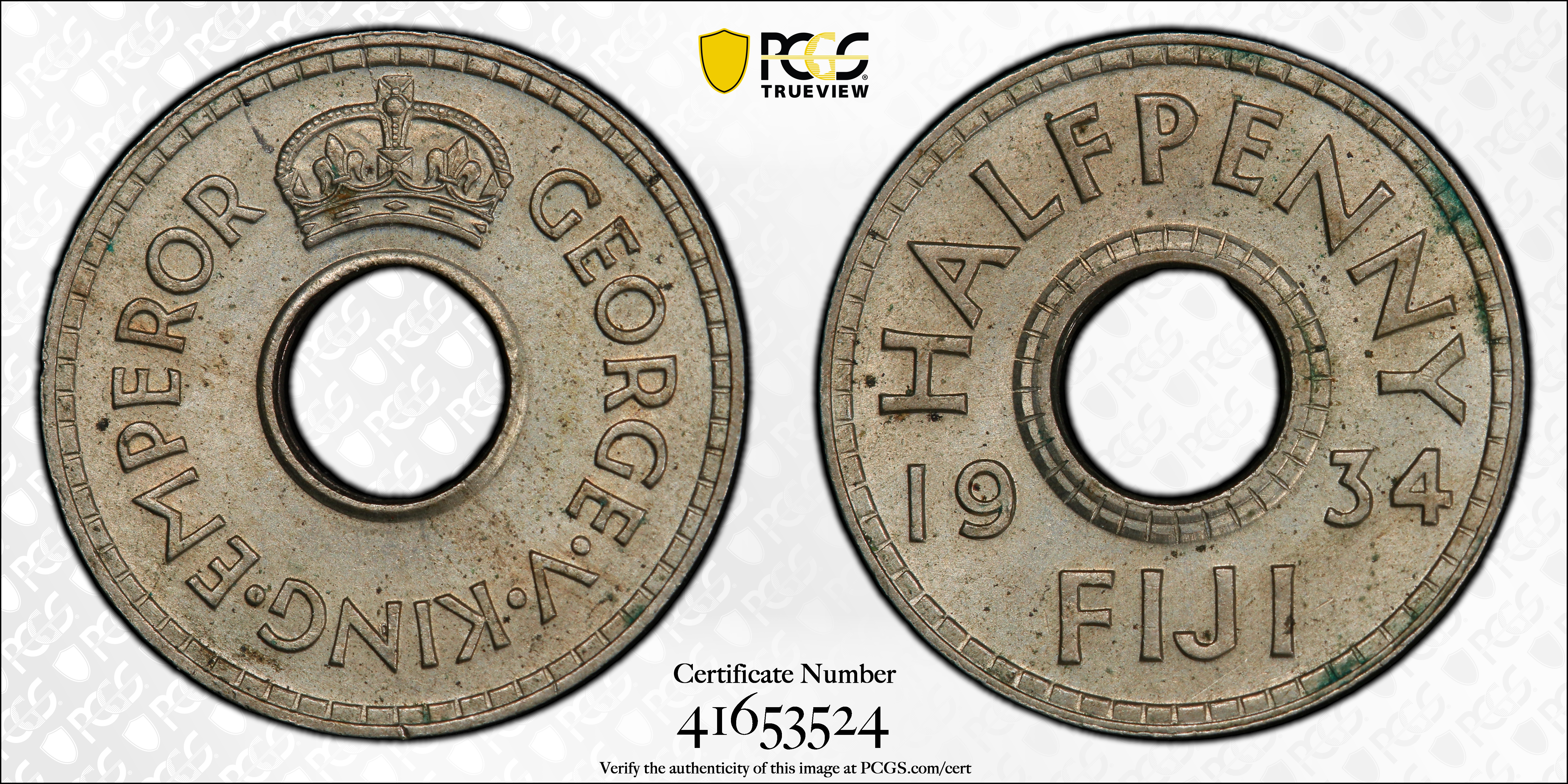 1934 1/2D MS63 Certification #41653524, PCGS #395204