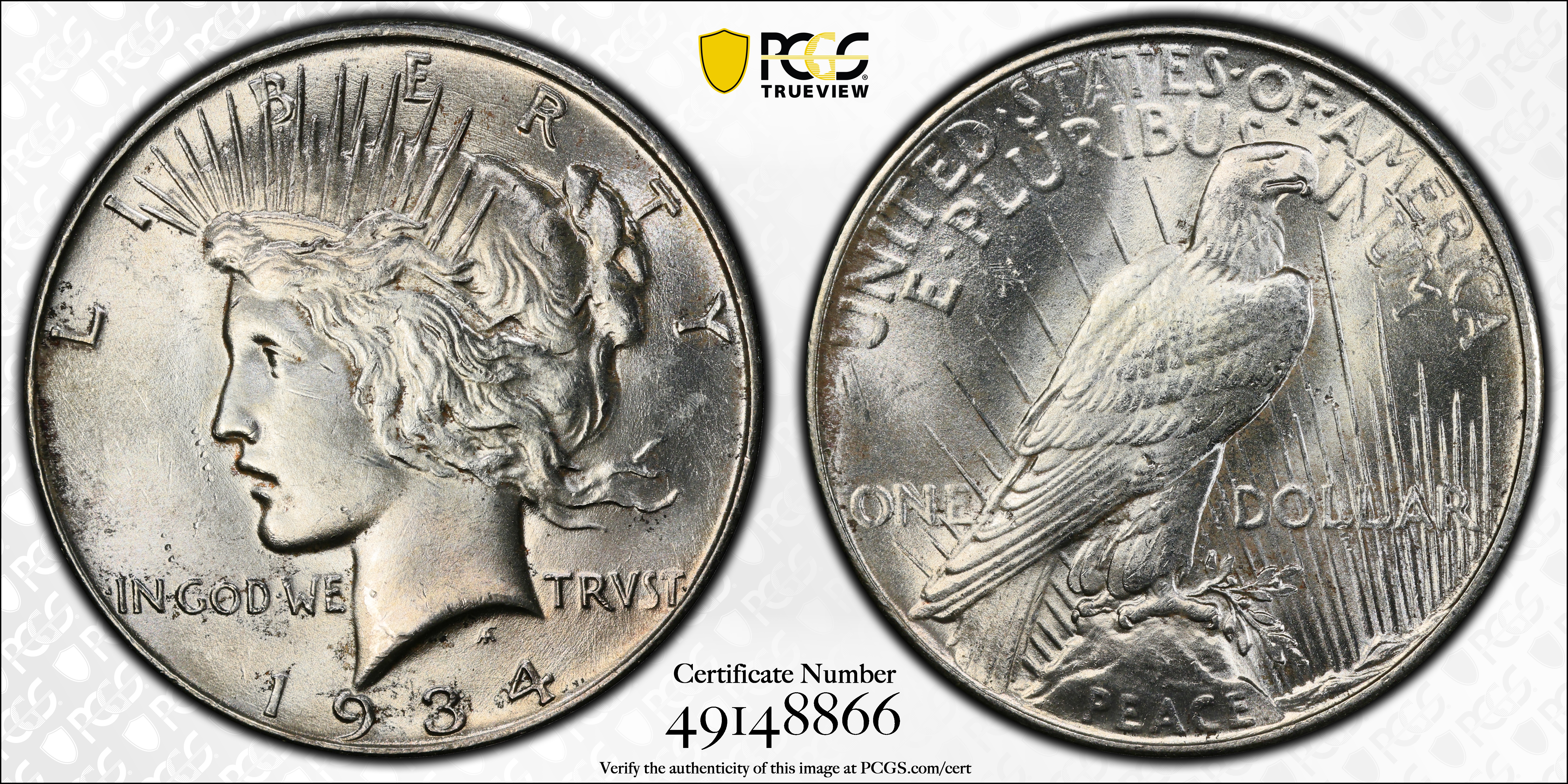 1934 $1 MS63 Certification #49148866, PCGS #7375