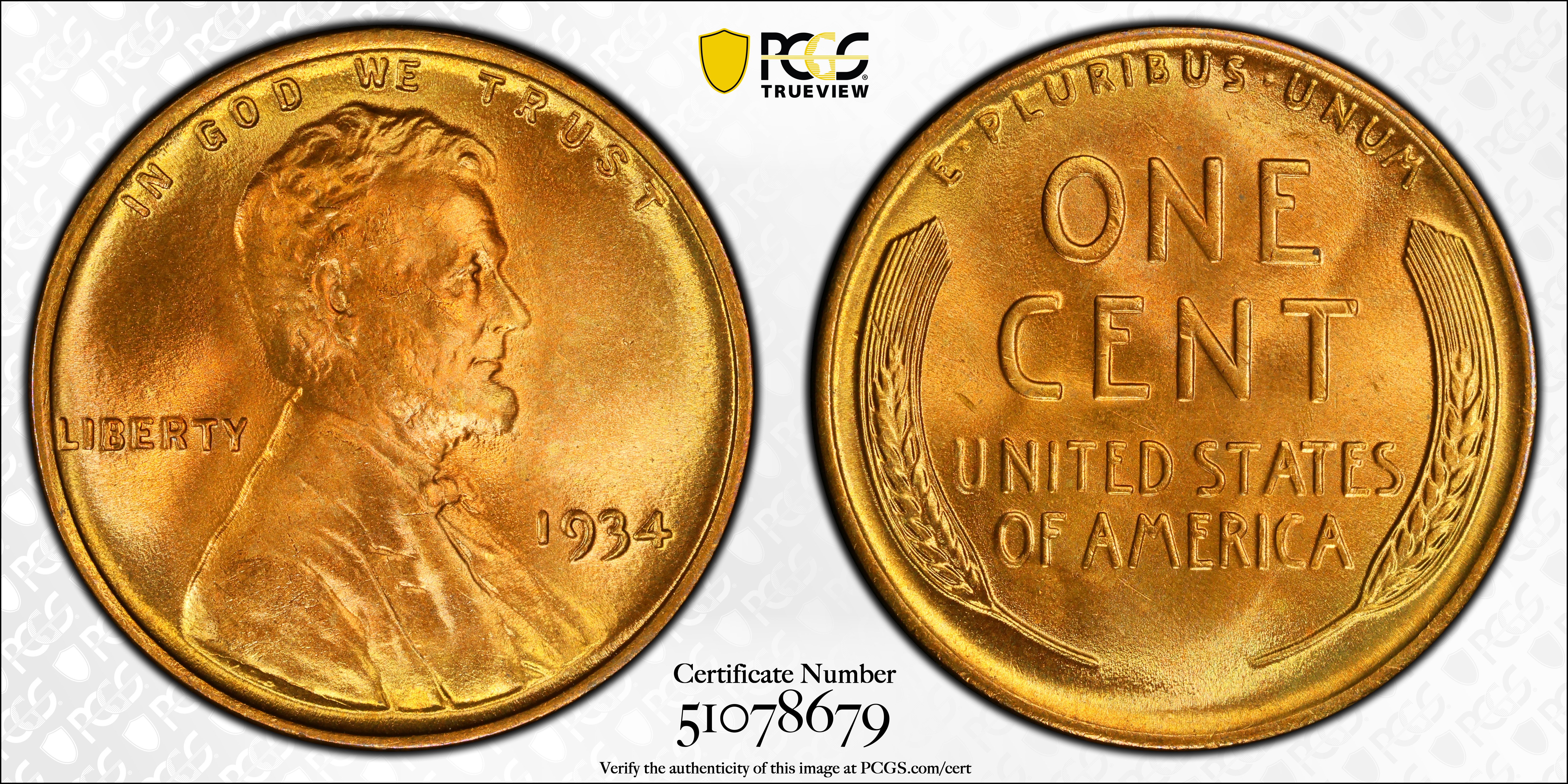 1934 1C, RD MS67+ RD Certification #51078679, PCGS #2635
