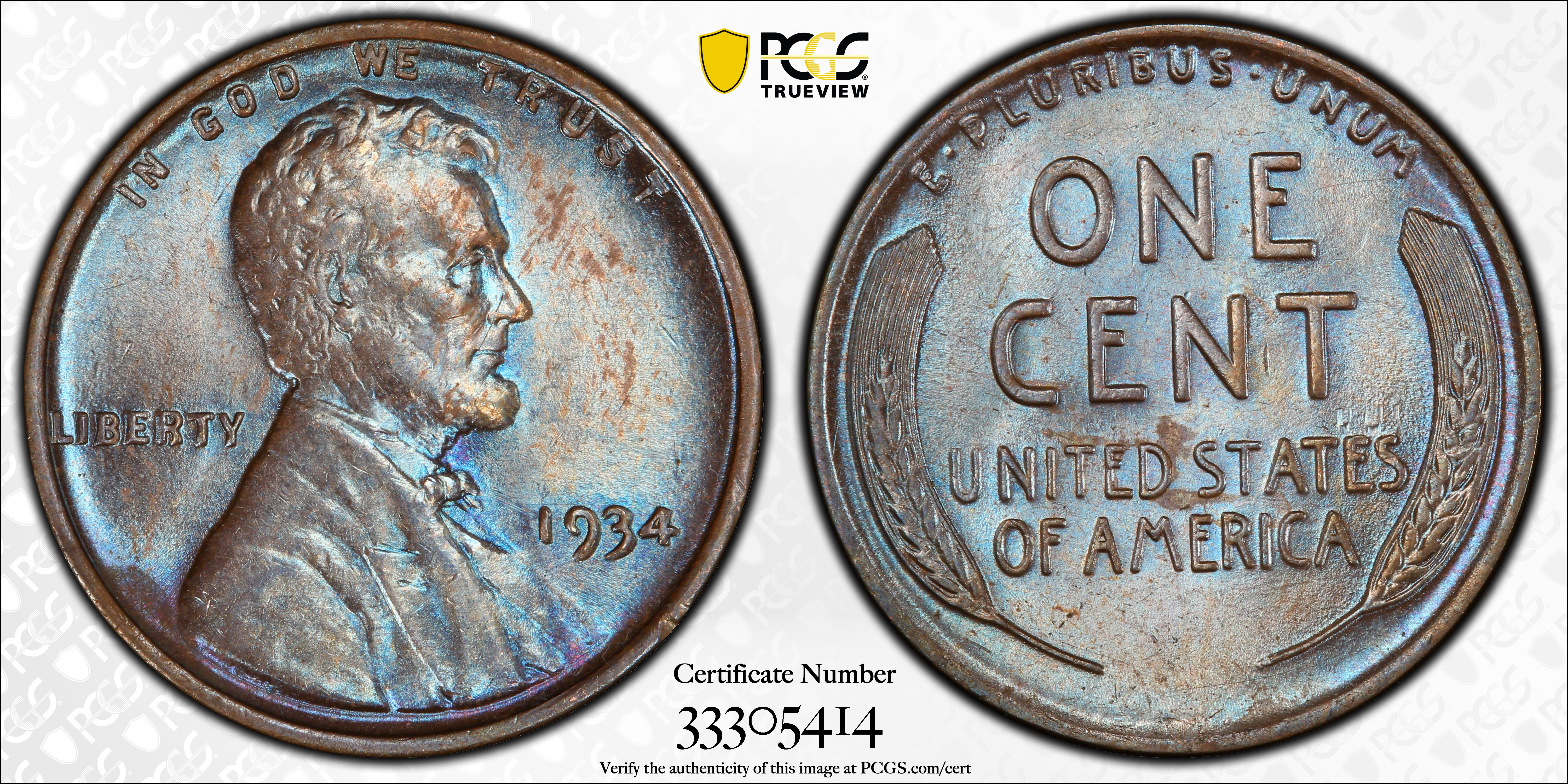 1934 1C, BN MS62BN Certification #33305414, PCGS #2633