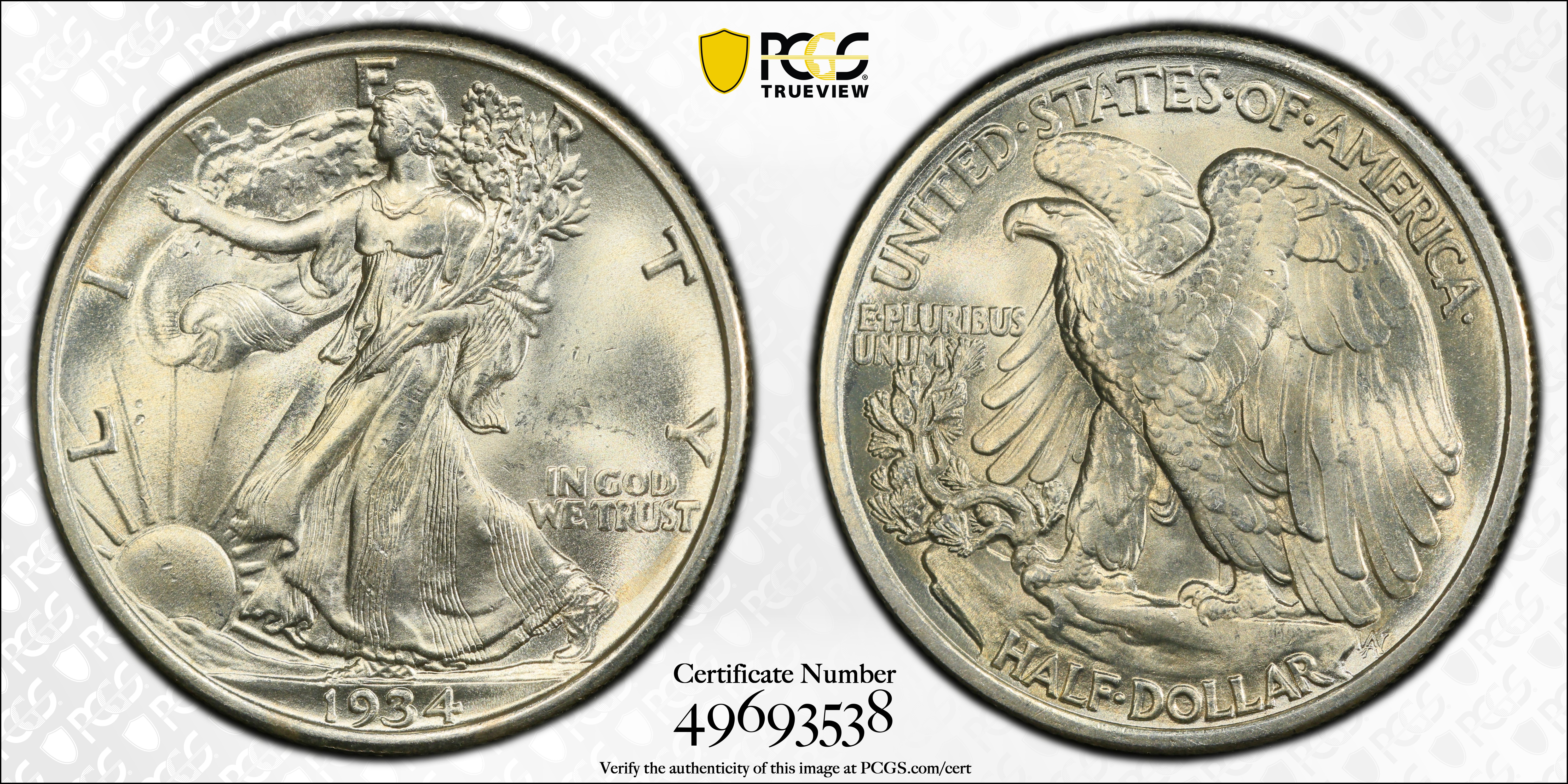 1934 50C MS65 Certification #49693538, PCGS #6592