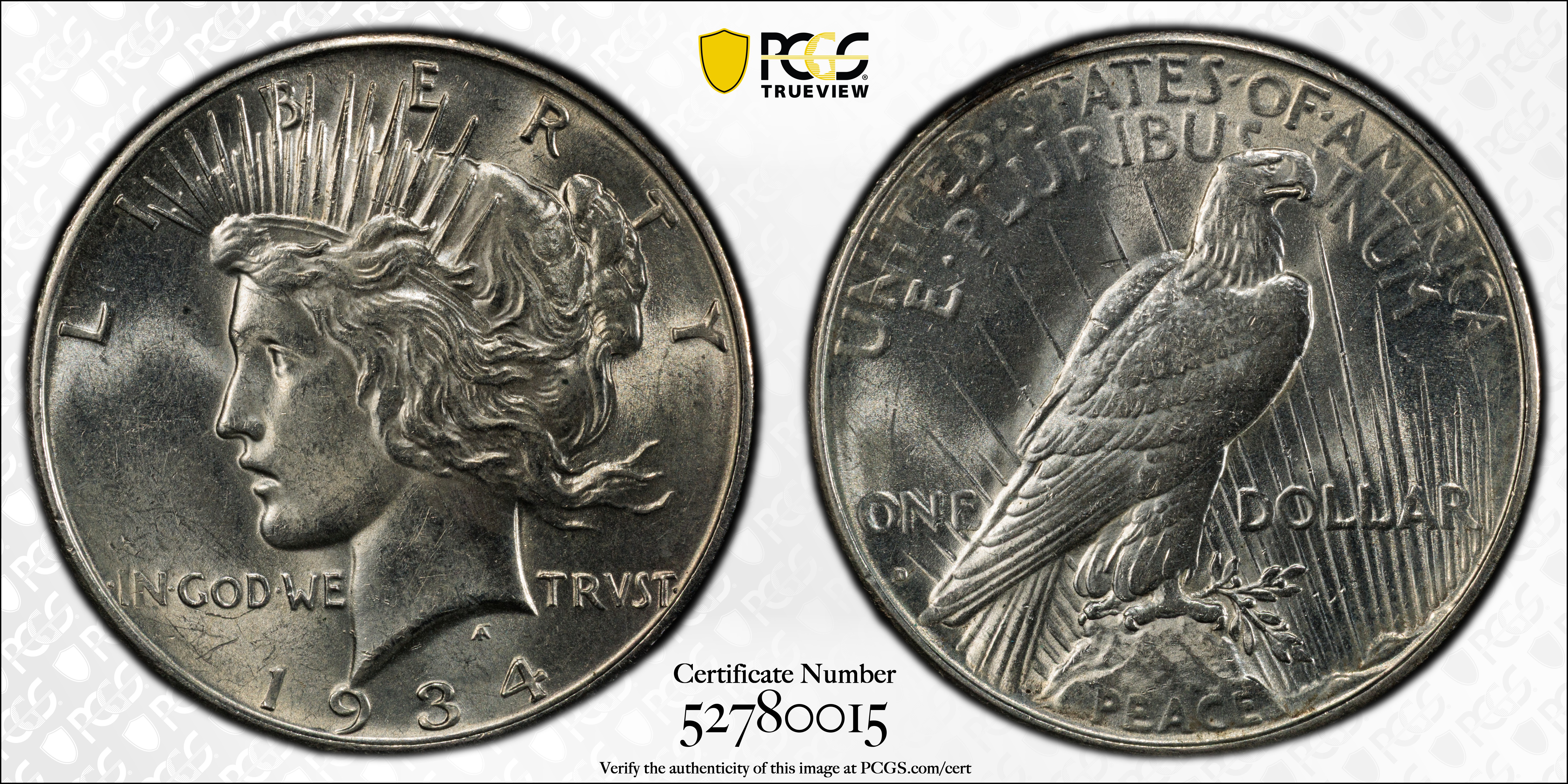 Circulated grades: In VF-20 to AU-58 the 1934-D Peace dollar is neither fish nor fowl; it is neither common nor scarce, but is somewhere in between.