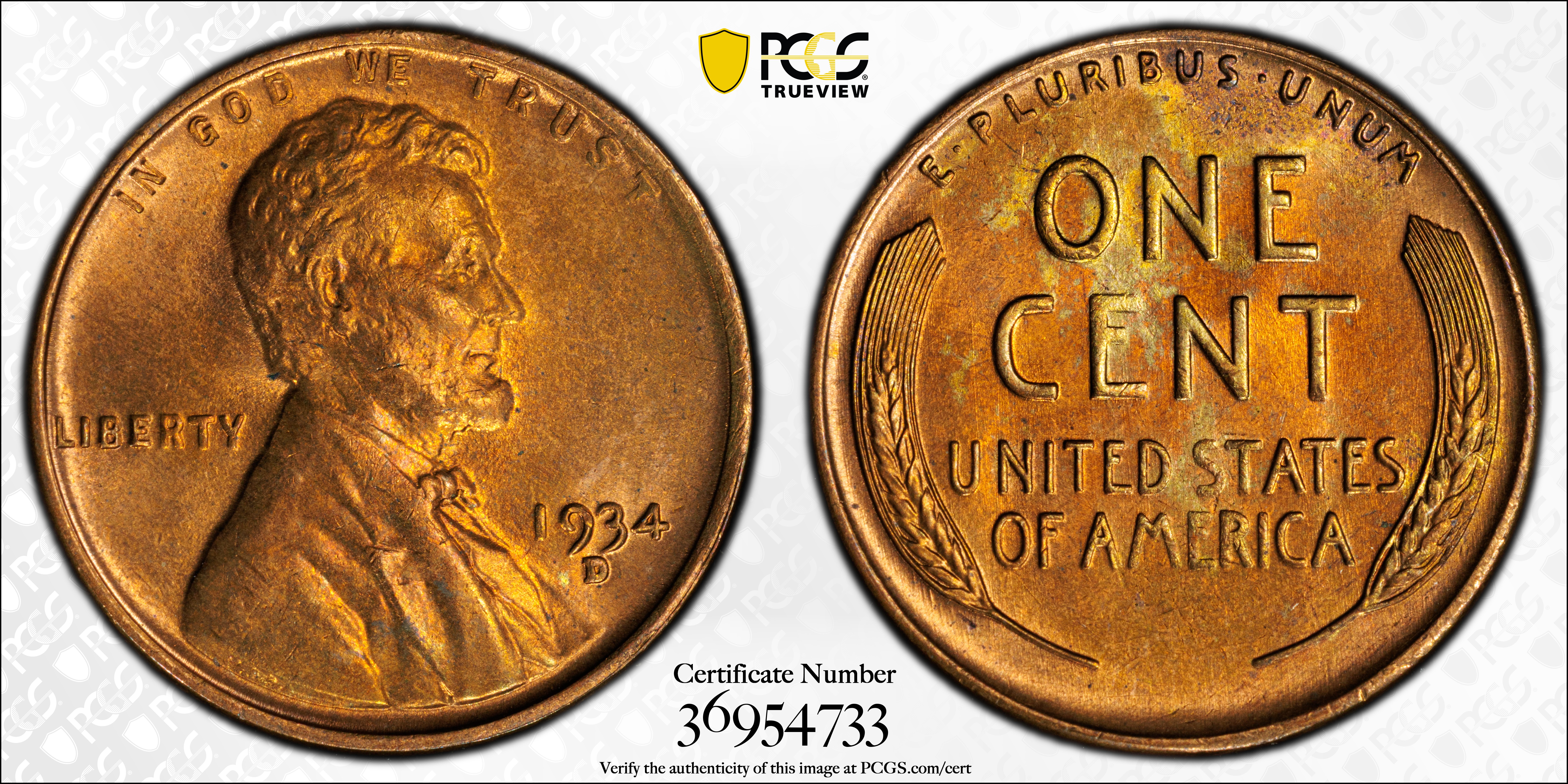 The 1934-D Lincoln cent is the last date from Denver Mint that is considered scarce in in grades of MS64 Red and higher.