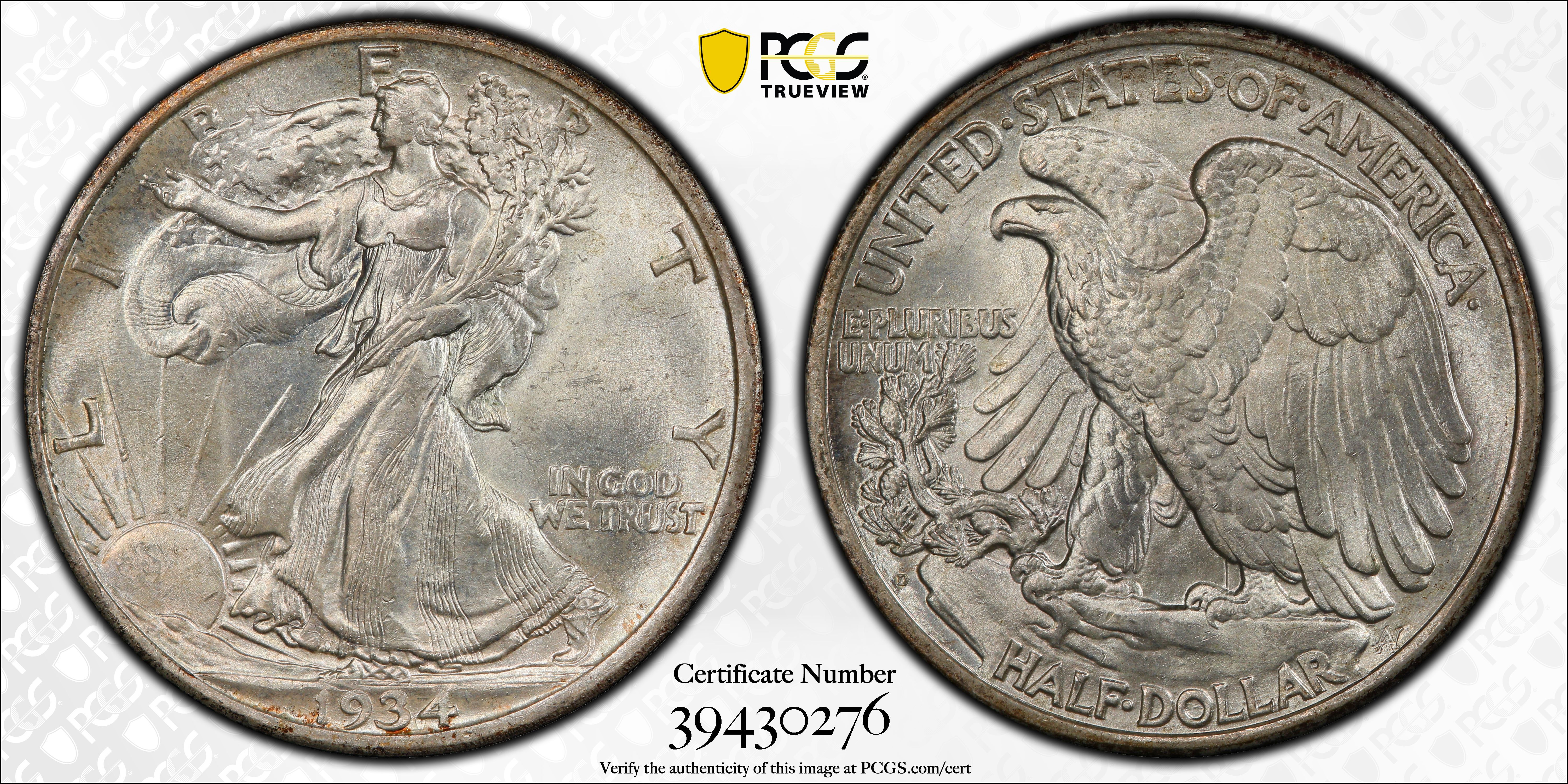 1934-D 50C MS65 Certification #39430276, PCGS #6593