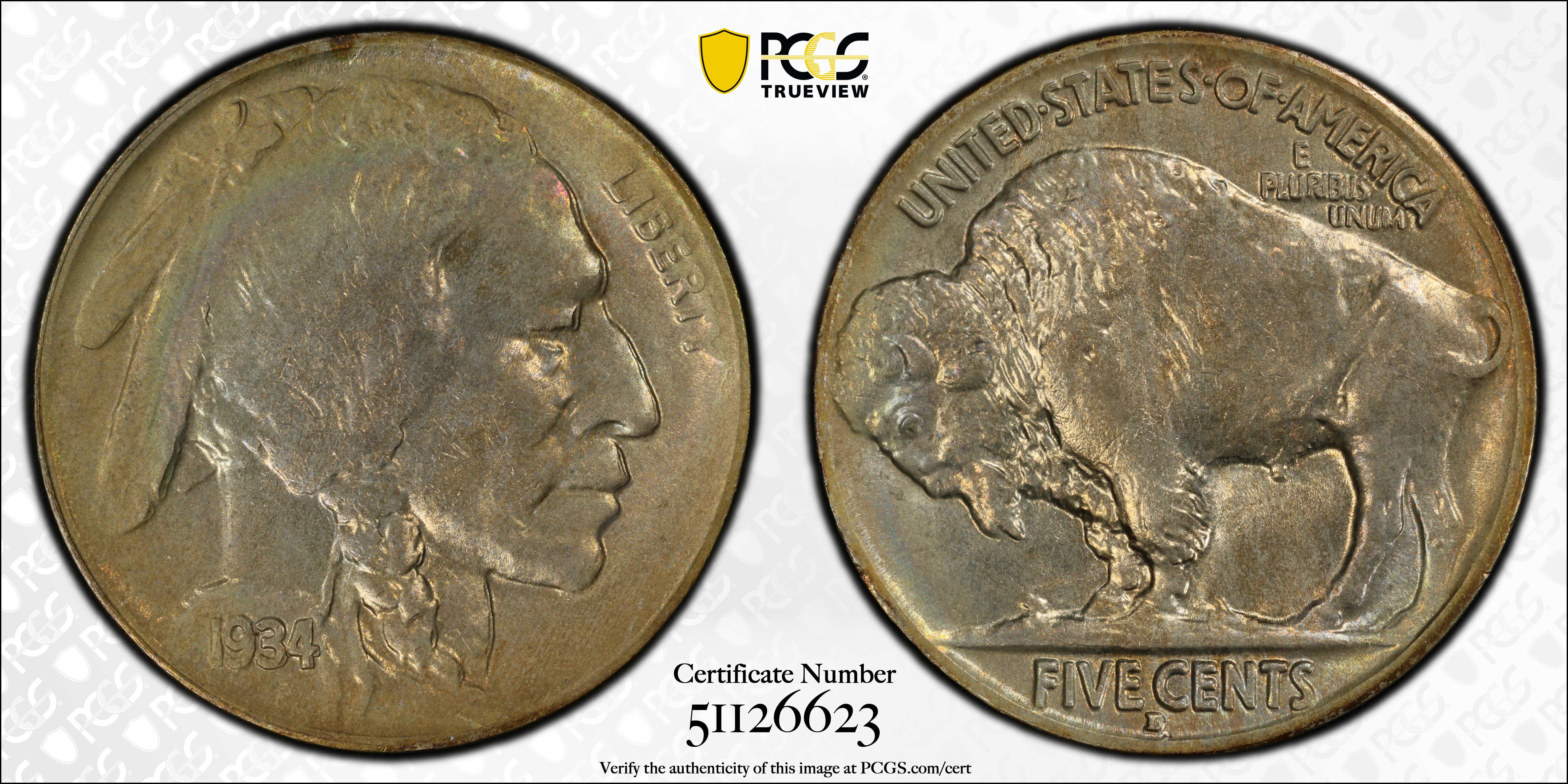 While not particularly rare in circulated grades, the 1934-D is the rarest Buffalo nickel of the 1930s in mint state and Gem condition. Strike can be a significant problem with this issue as many specimens have very weakly struck horn detail. Luster is usually quite nice and deeply frosty.