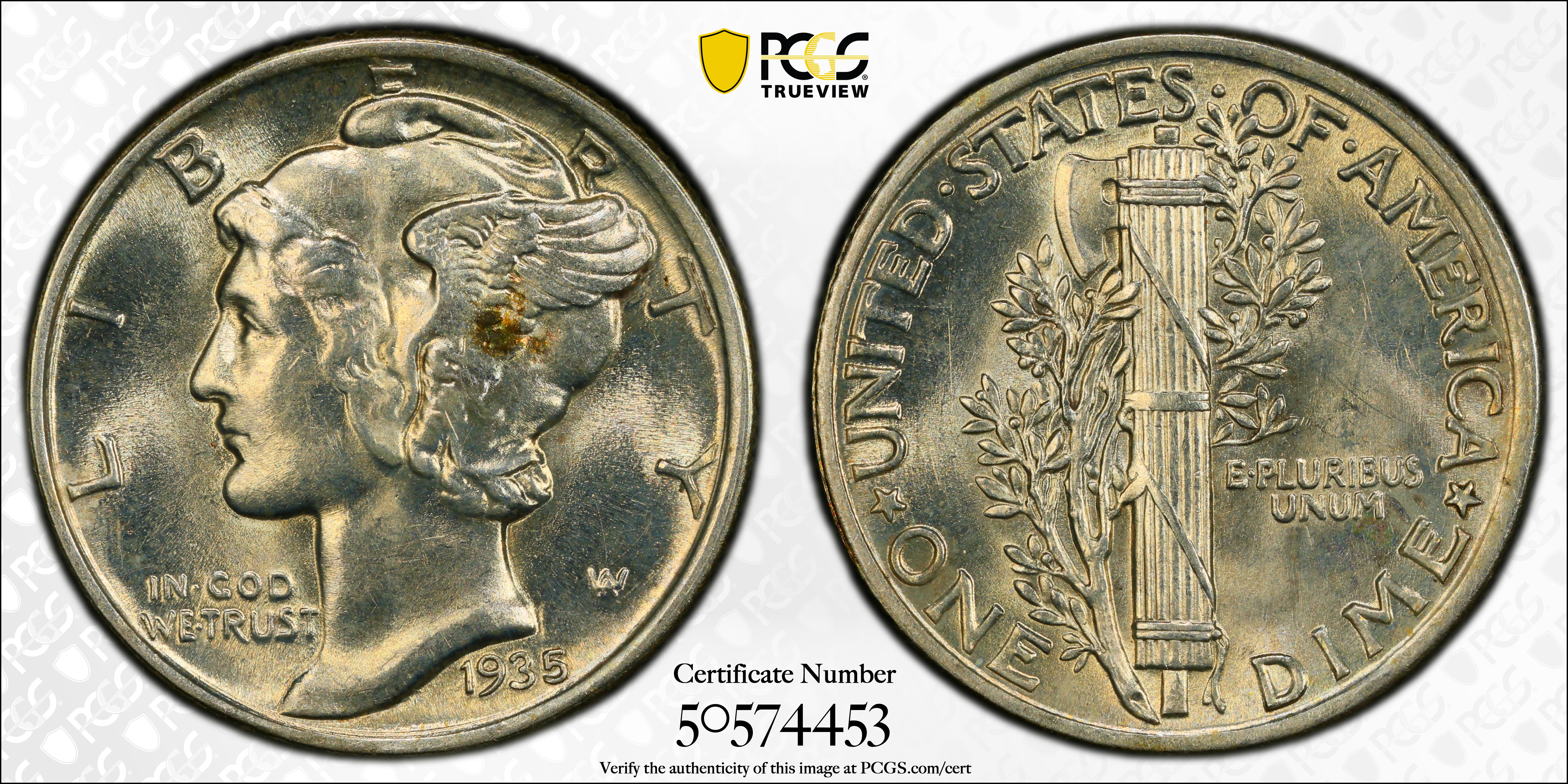 1935 10C MS63 Certification #50574453, PCGS #4992