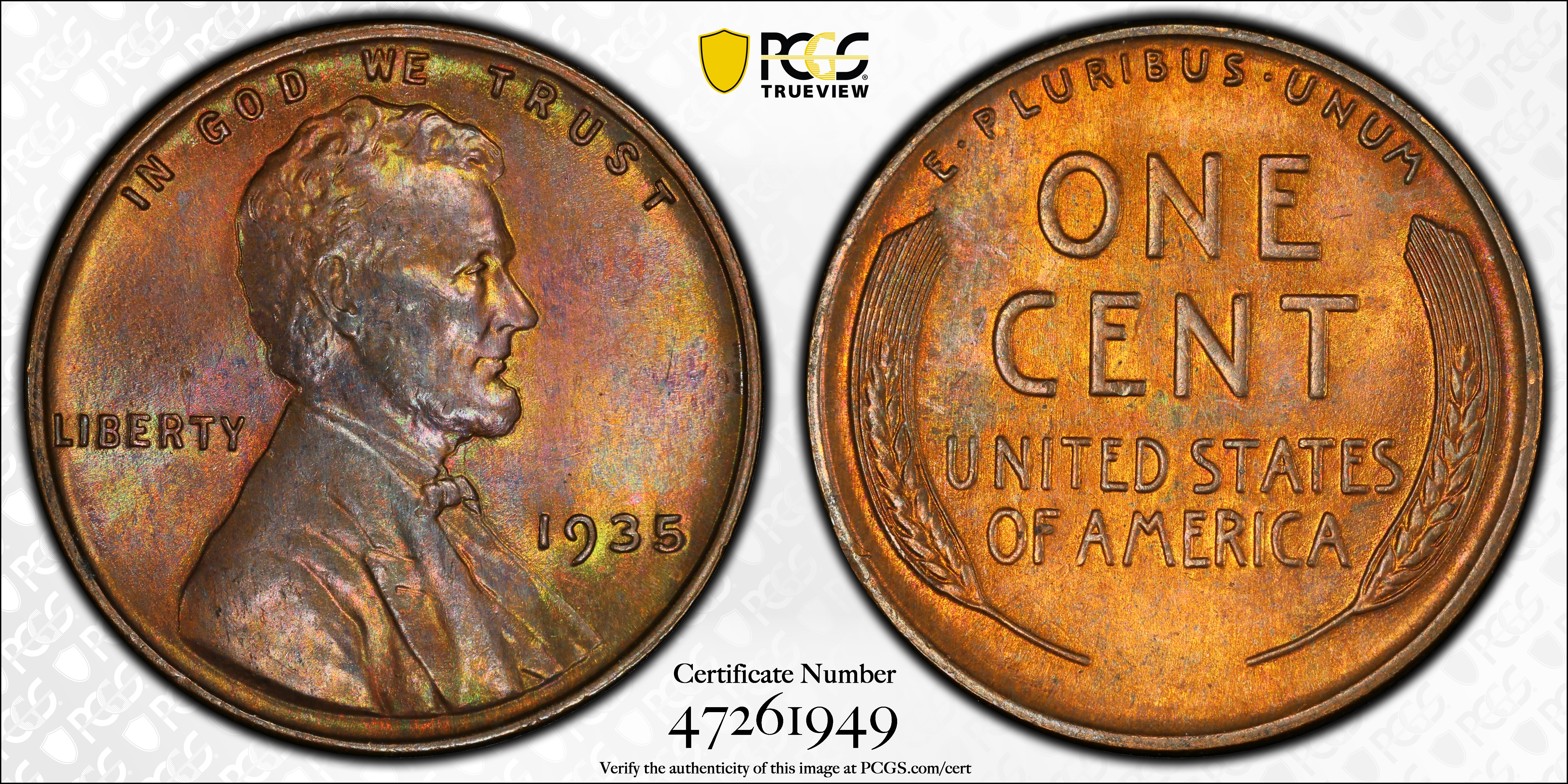 1935 1C, BN MS65BN Certification #47261949, PCGS #2639