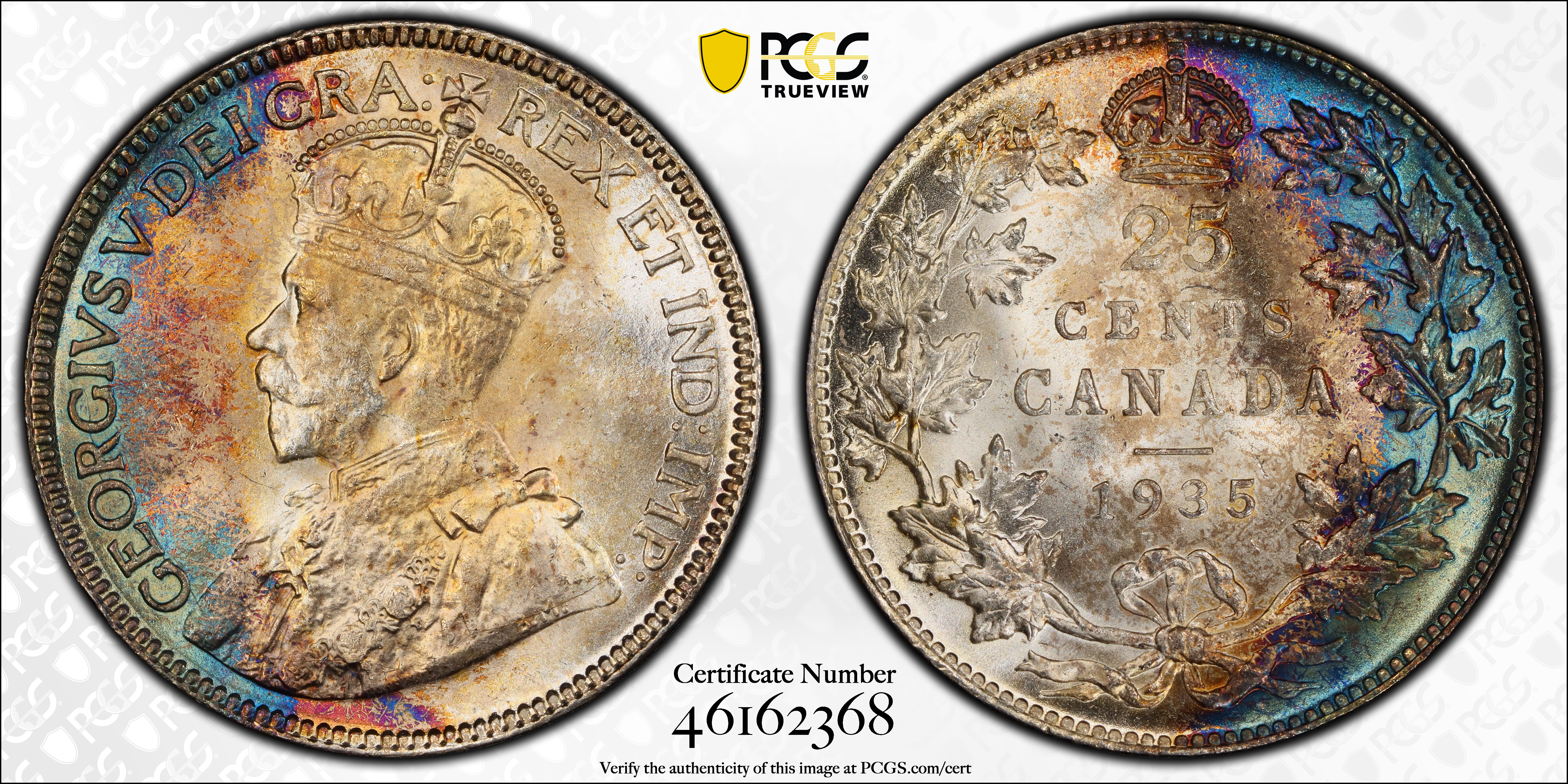 1935 25C MS64 Certification #46162368, PCGS #31814