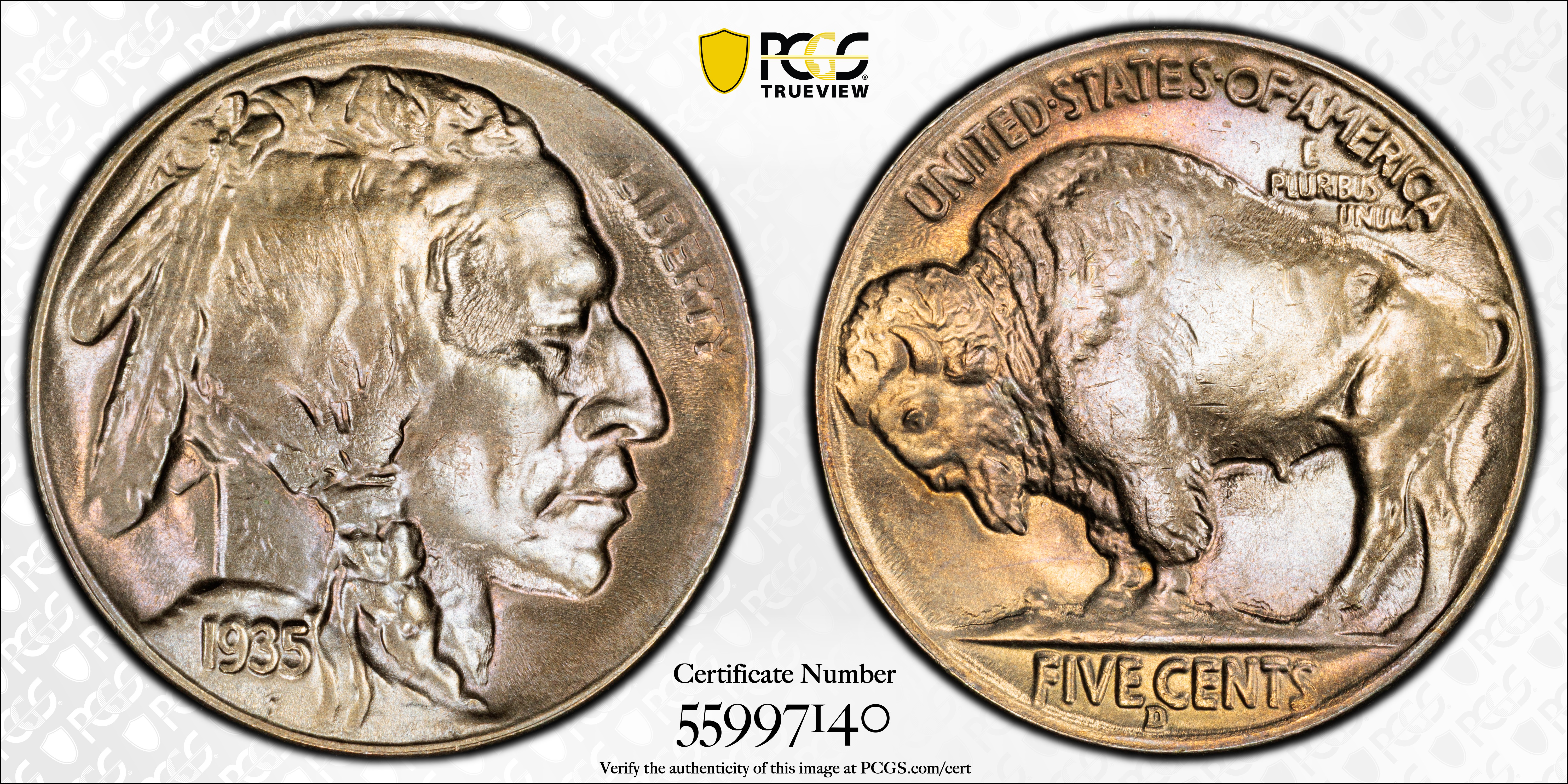 1935-D 5C MS65+ Certification #55997140, PCGS #3975