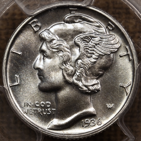 PR64-65: Most 1936 Proof Mercury Dimes are in PR64–65 condition. Possibly about half of the mintage exists in these two grades combined.