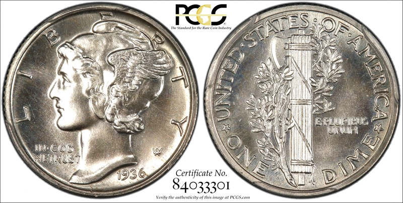 1936 10C PR67 Certification #84033301, PCGS #5071
