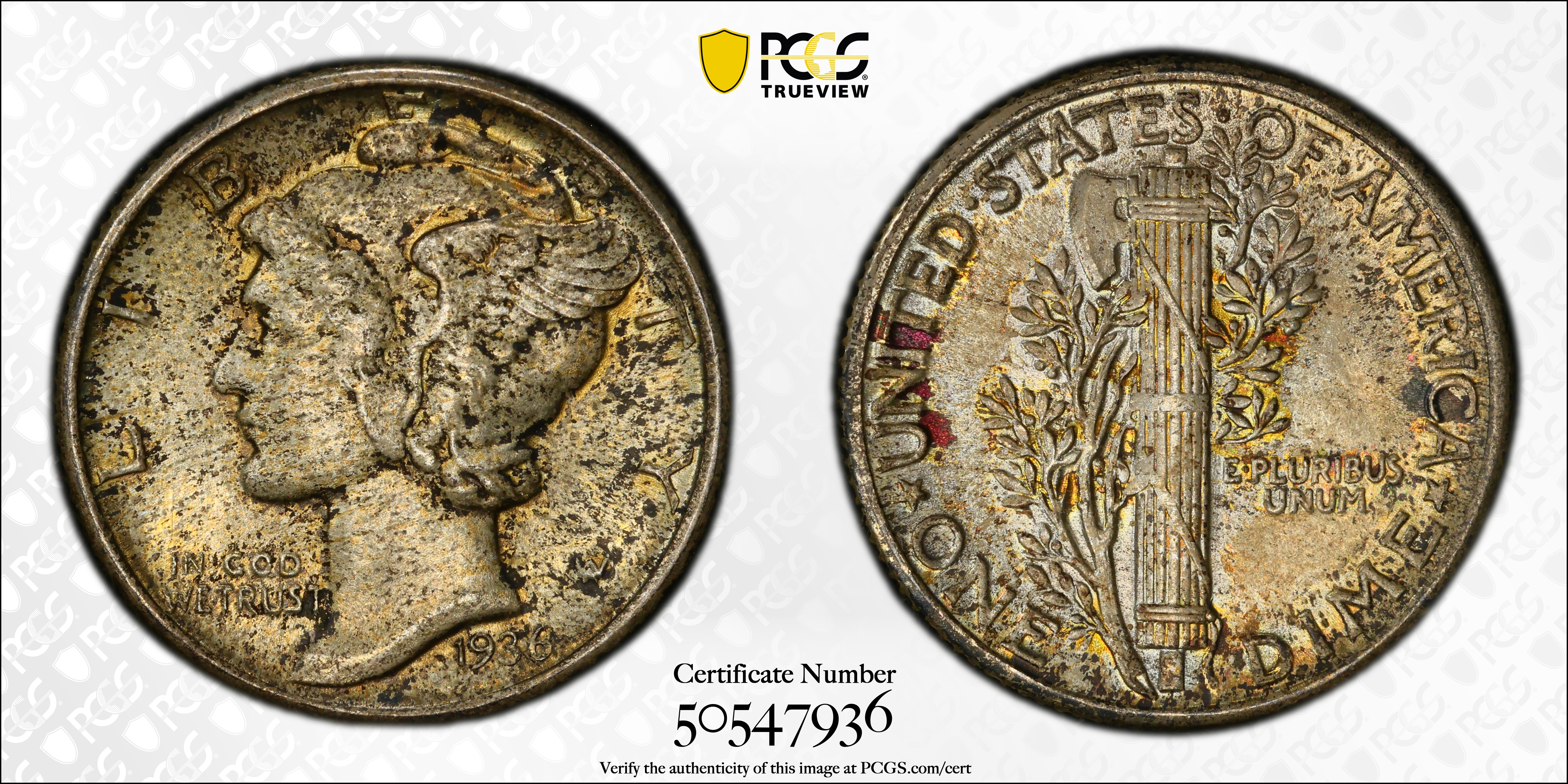 1936 10C MS64 Certification #50547936, PCGS #4998