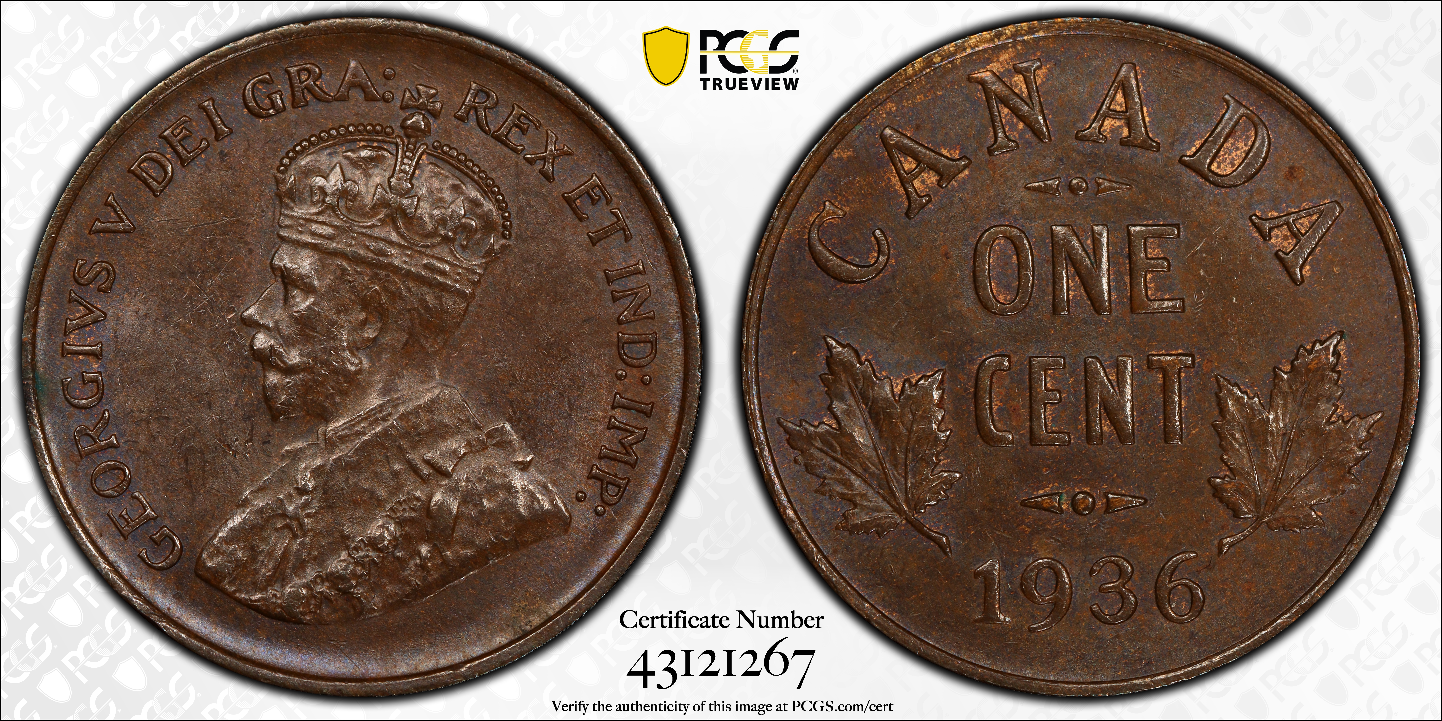 1936 1C, BN MS64BN Certification #43121267, PCGS #30264