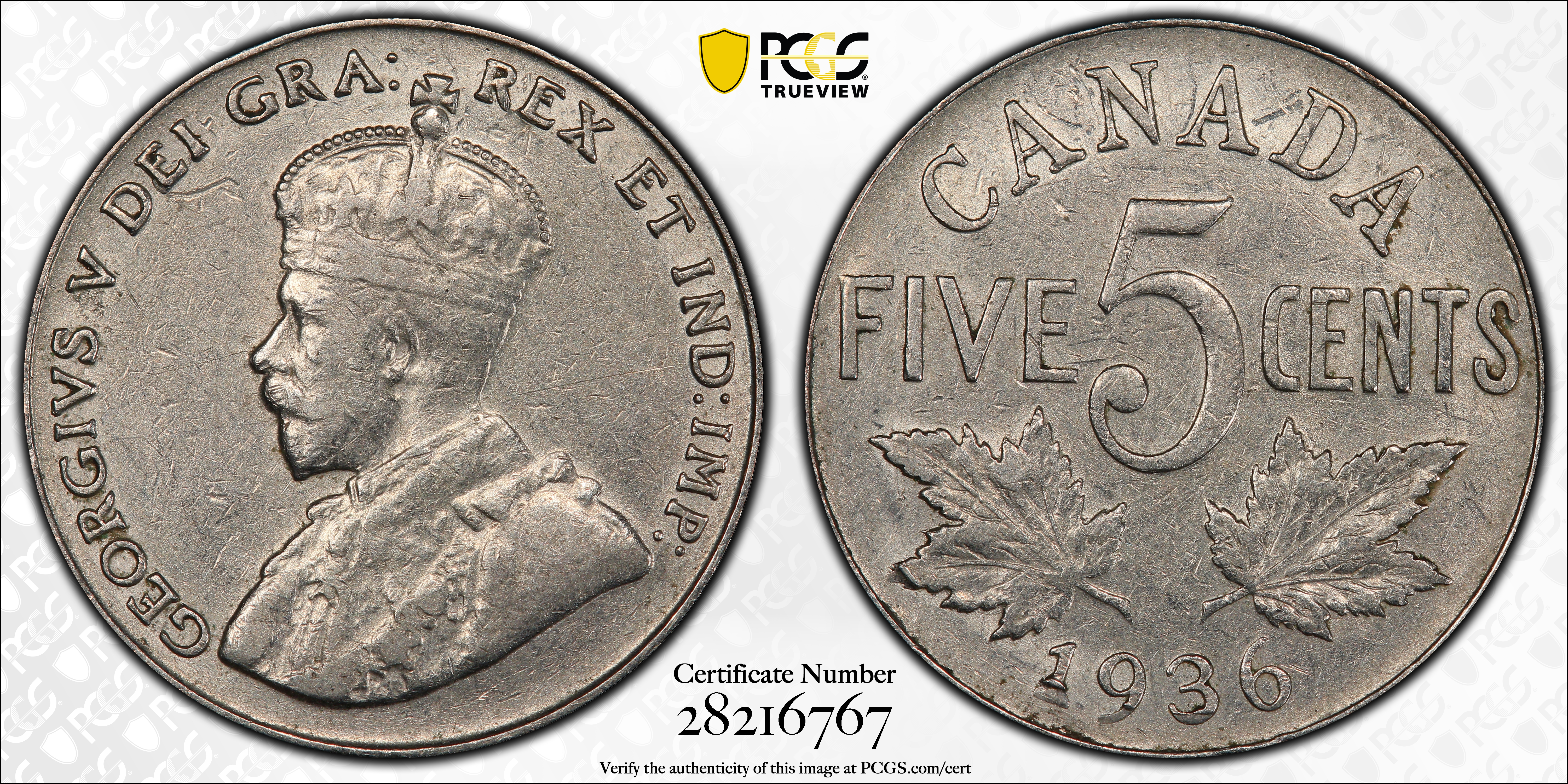 1936 5C Far S AU50 Certification #28216767, PCGS #754975