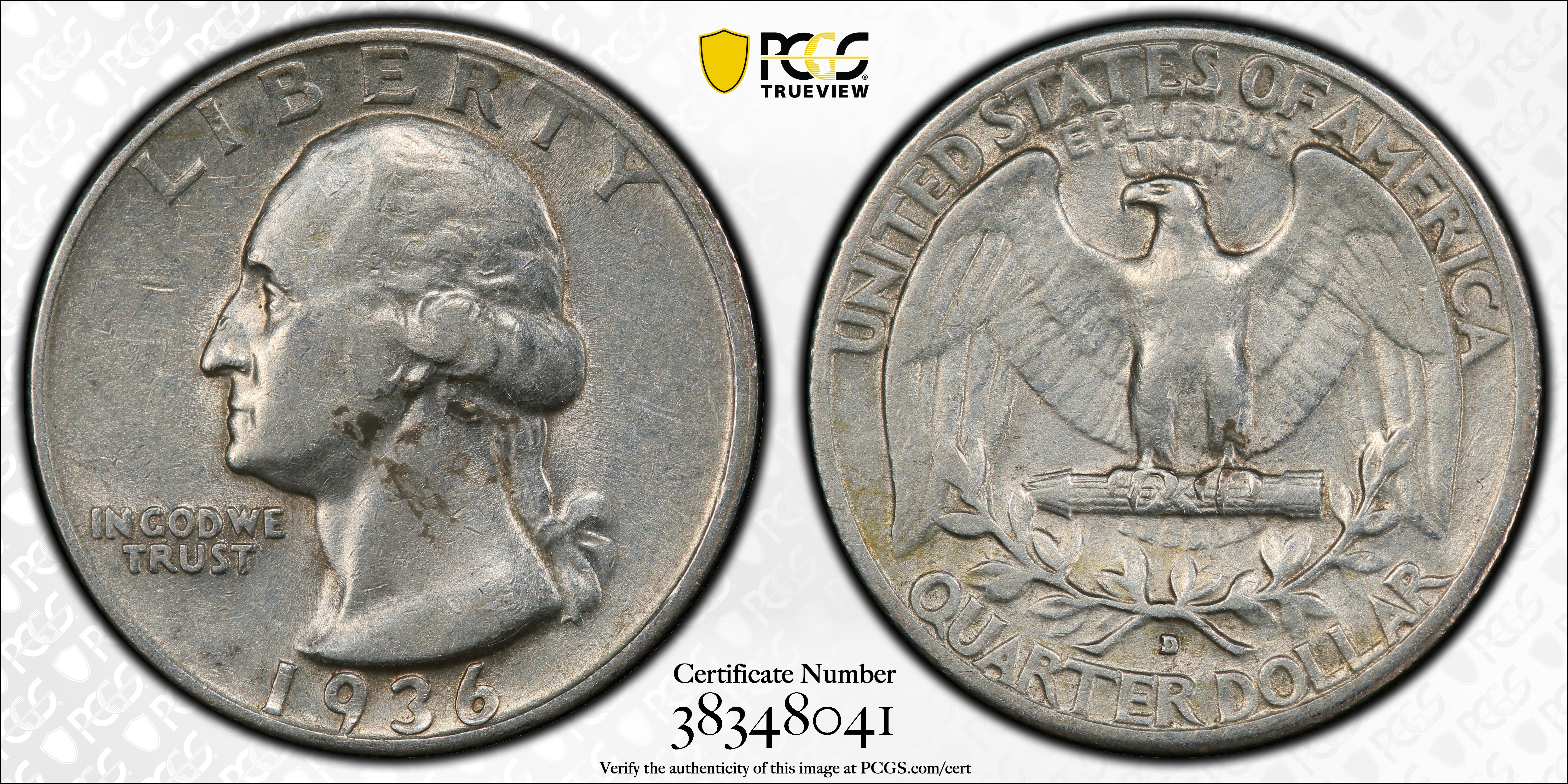 1936-D 25C XF40 Certification #38348041, PCGS #5801