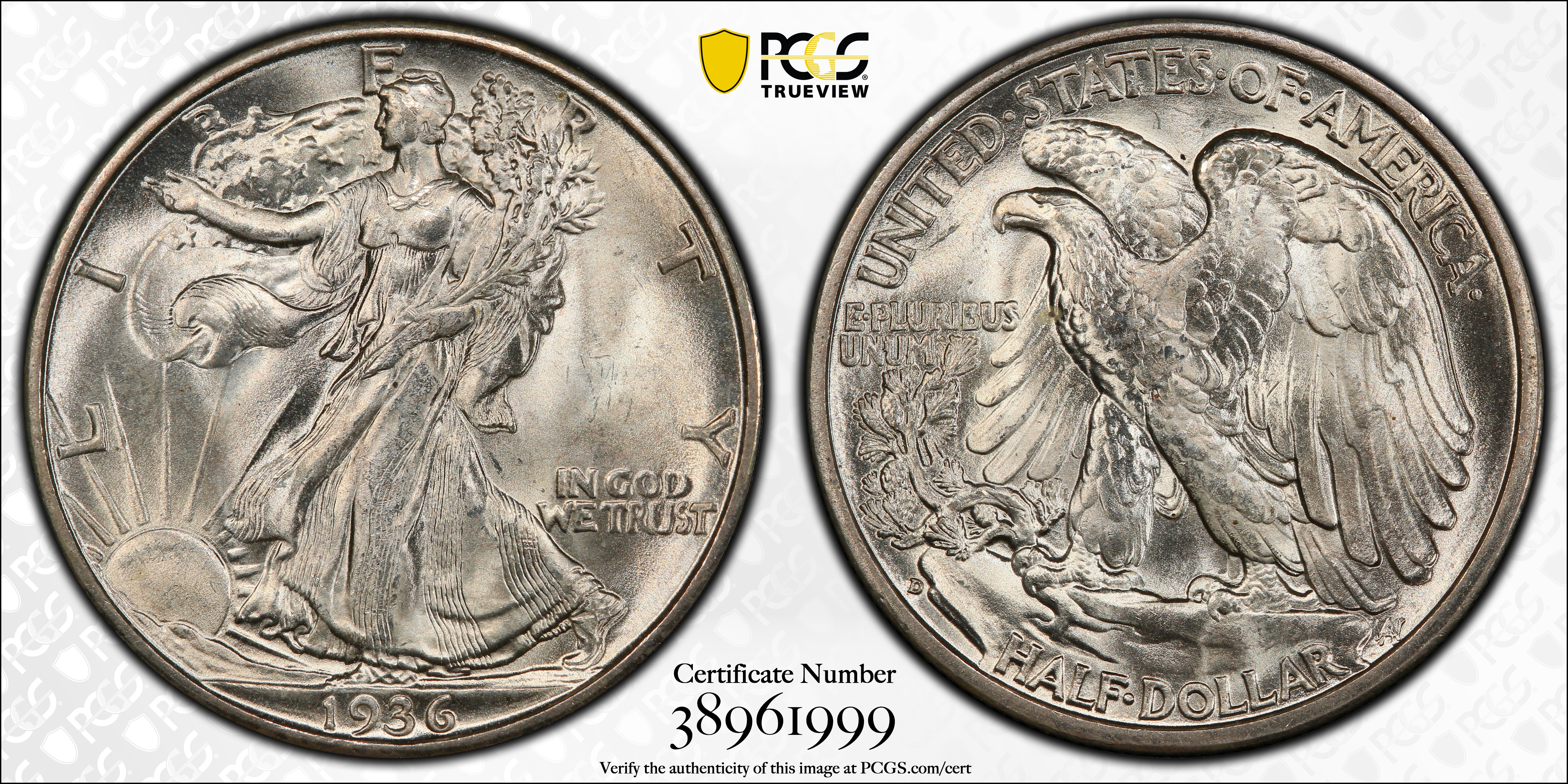 1936-D 50C MS66+ Certification #38961999, PCGS #6599