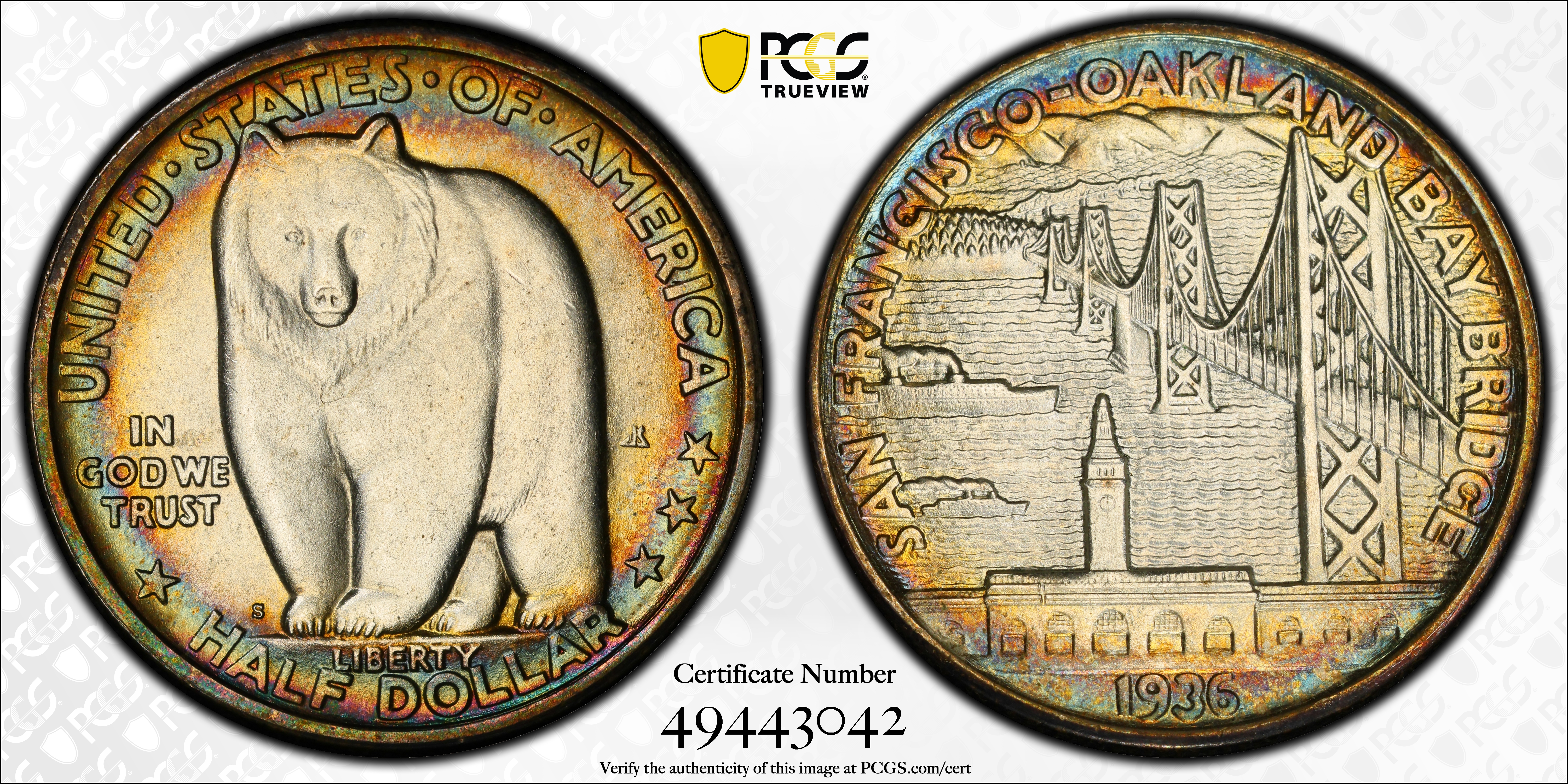 1936-S 50C Bay Bridge MS66 Certification #49443042, PCGS #9254