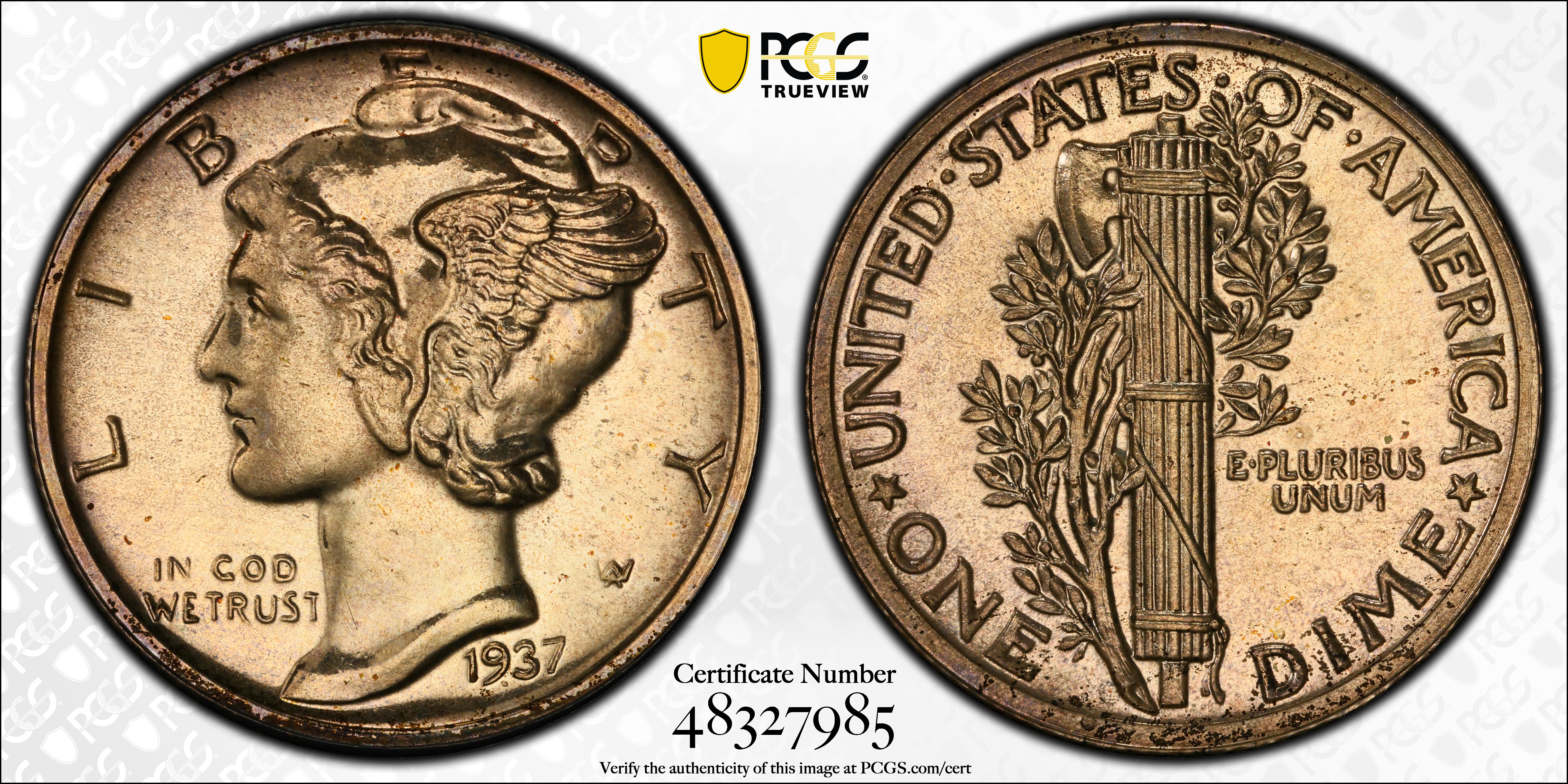 1937 10C PR64 Certification #48327985, PCGS #5072
