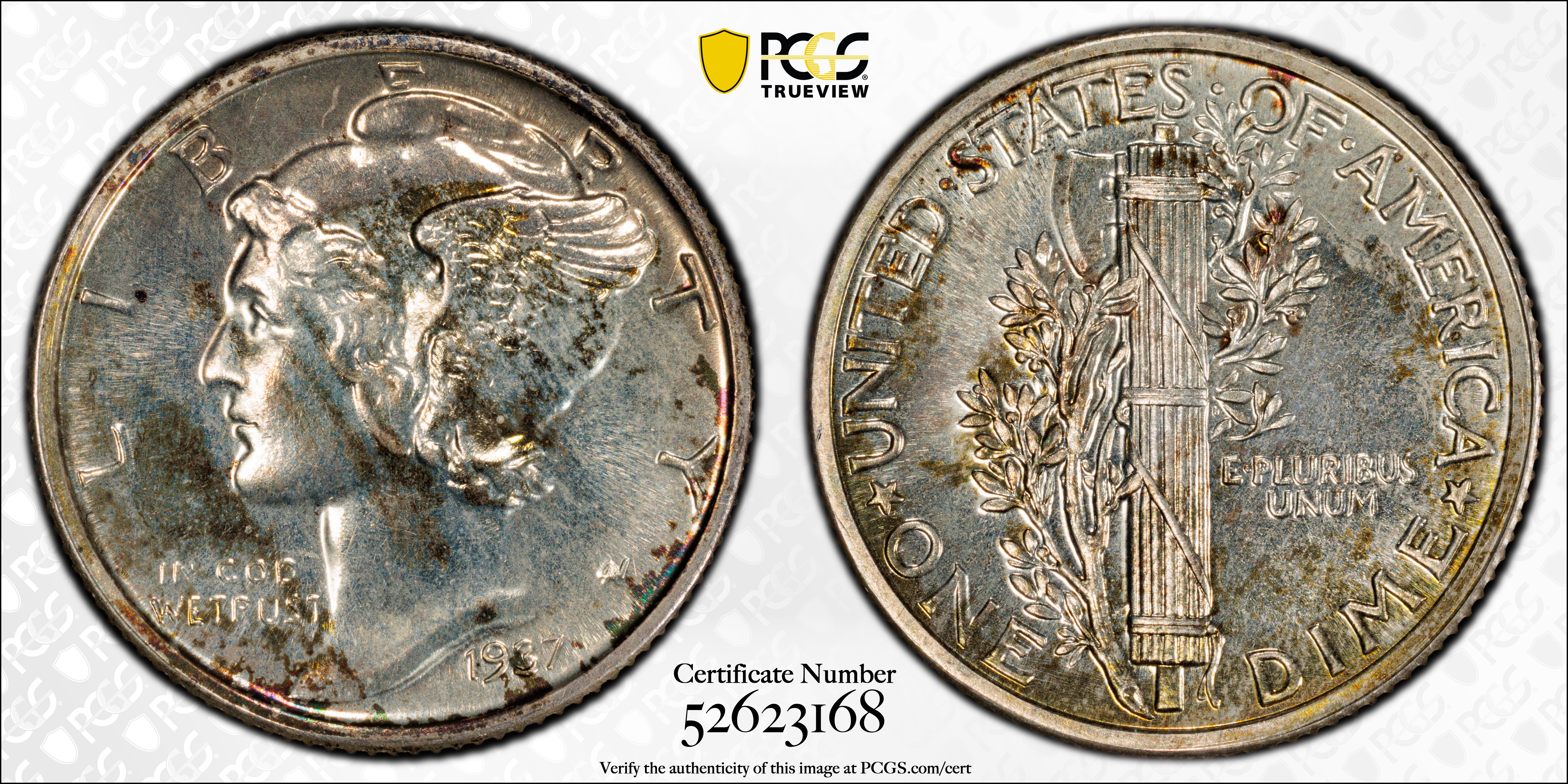 1937 10C PR64 Certification #52623168, PCGS #5072