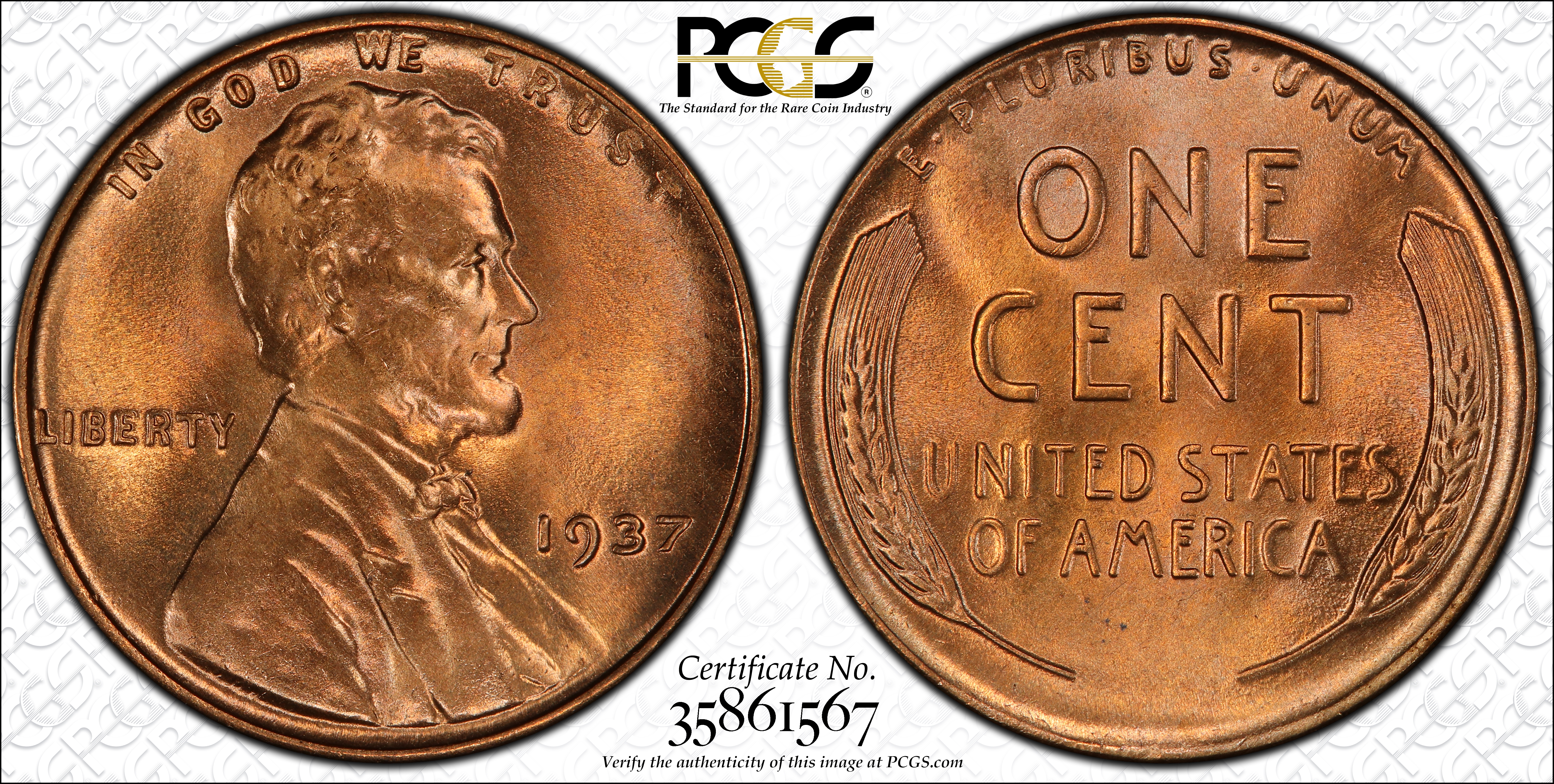 1937 1C, RD MS66RD Certification #35861567, PCGS #2659