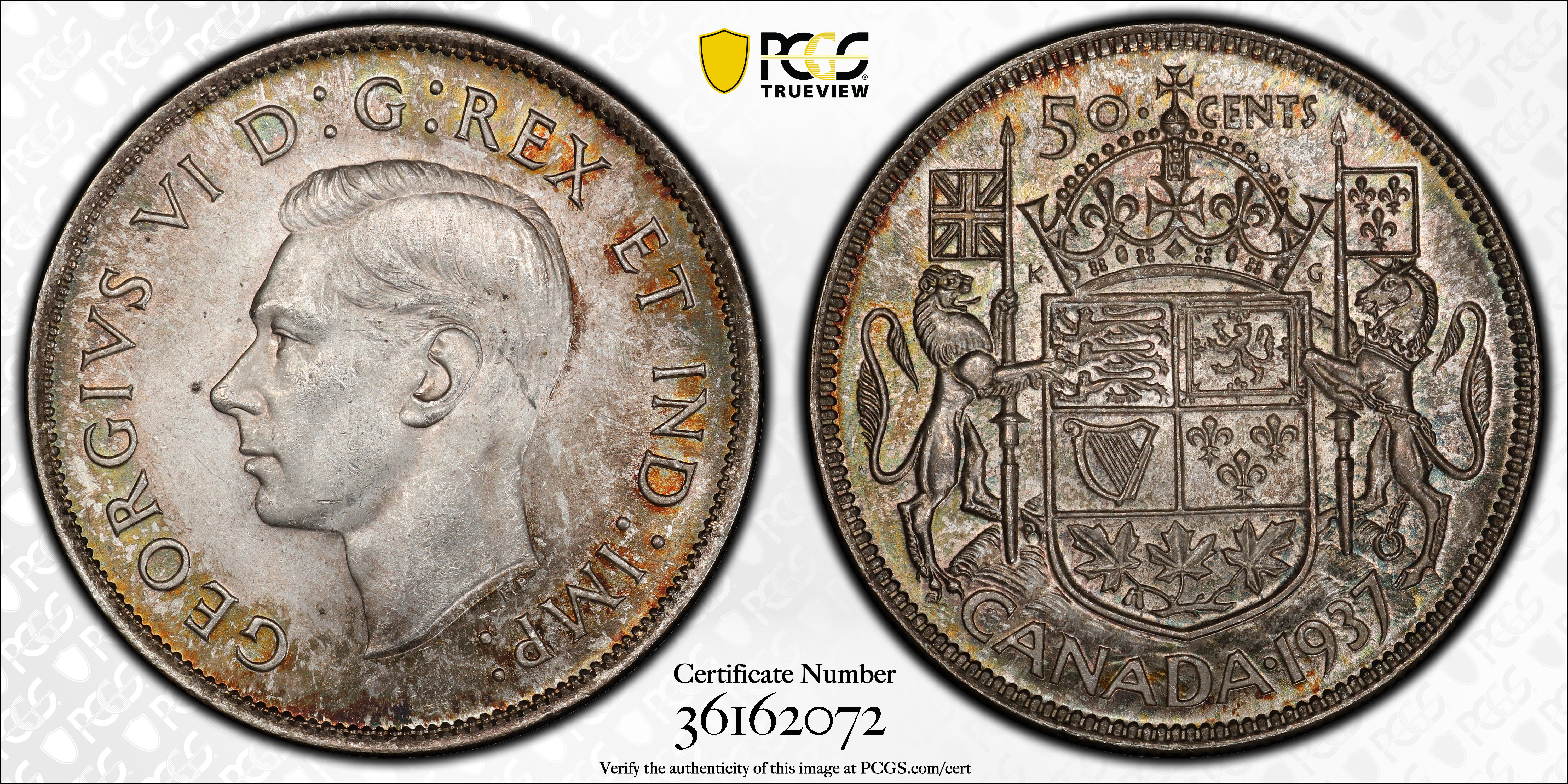 1937 50C MS64+ Certification #36162072, PCGS #32182