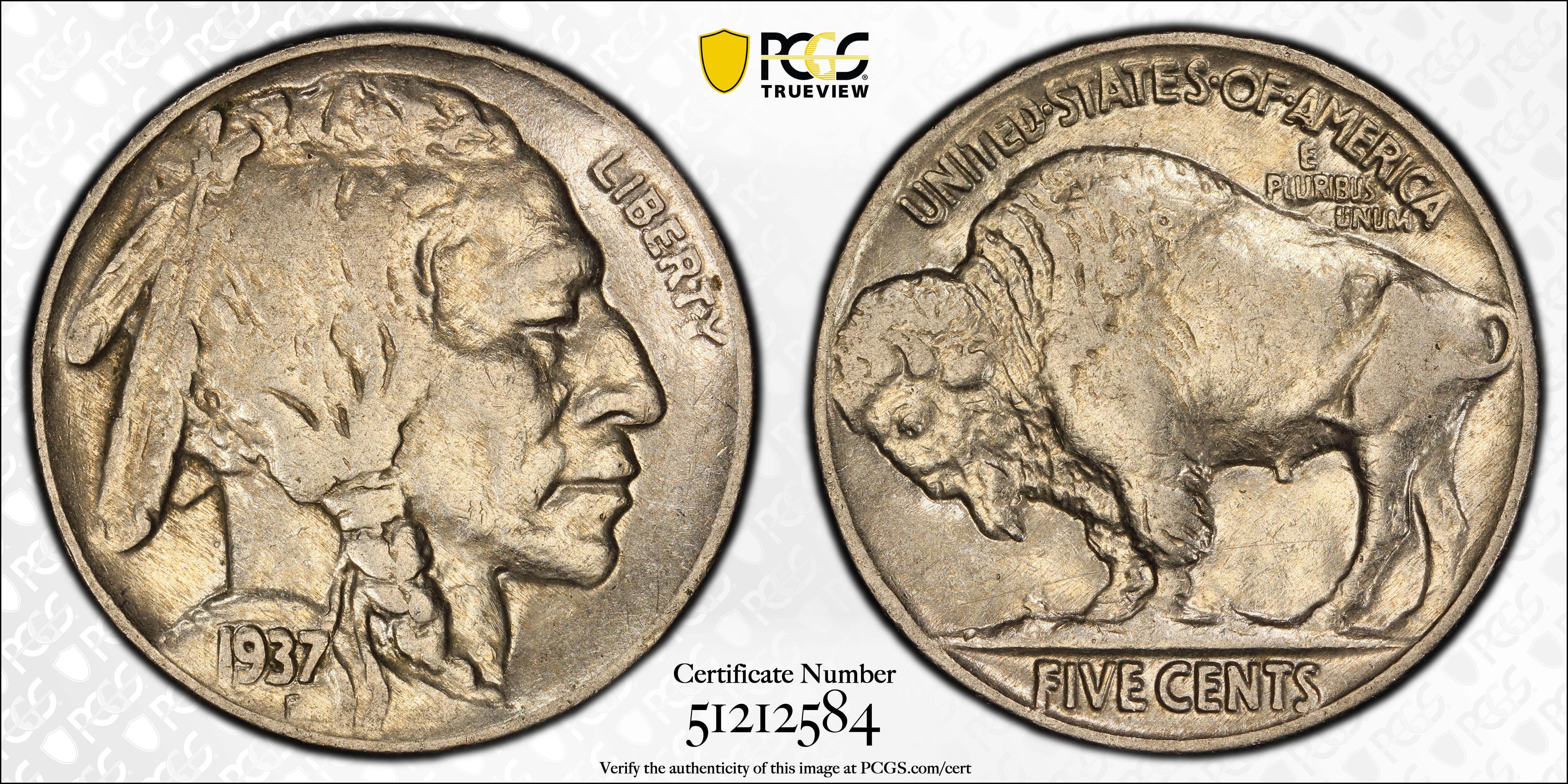The 1937 is the most common Buffalo nickel in circulated grades and the second most common in mint state and Gem condition (after the 1938-D). The strike is typically sharp and the luster is typically frosty.