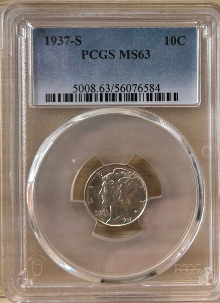 1937-S 10C MS63 Certification #56076584, PCGS #5008