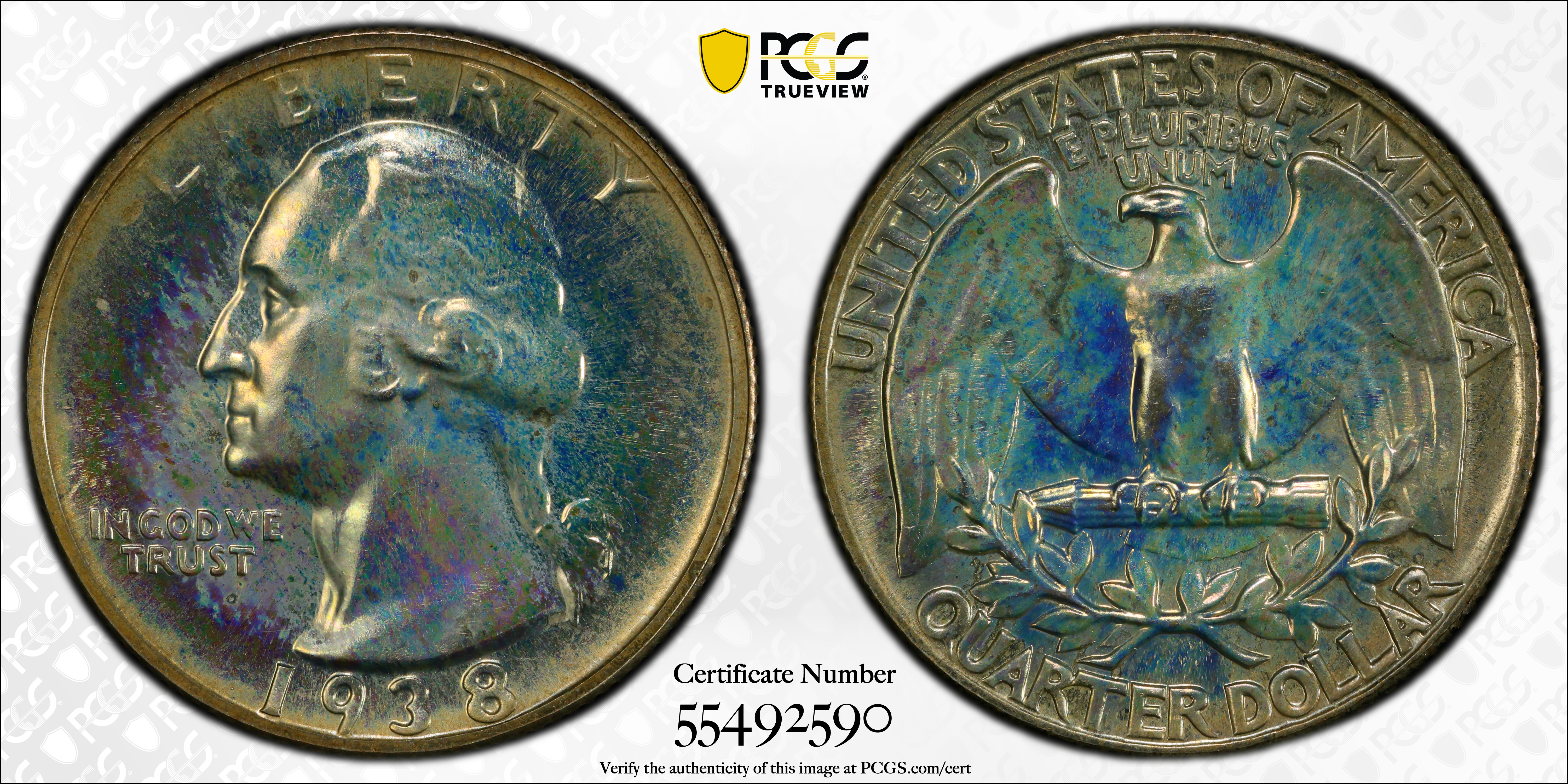 The 1938 Proof Washington Quarters has the third lowest mintage in the entire Proof Washington Quarter series. Most surviving examples appear to be in about PR65 condition. Examples in PR66 are scarce but still probably over 1,000 still survive in this condition and higher. In PR67 it becomes somewhat scarce with possibly less than a couple hundred examples available. In PR68 condition it is a diamond in the rough, as there is less than a handful of examples known and none existing in any higher condition.