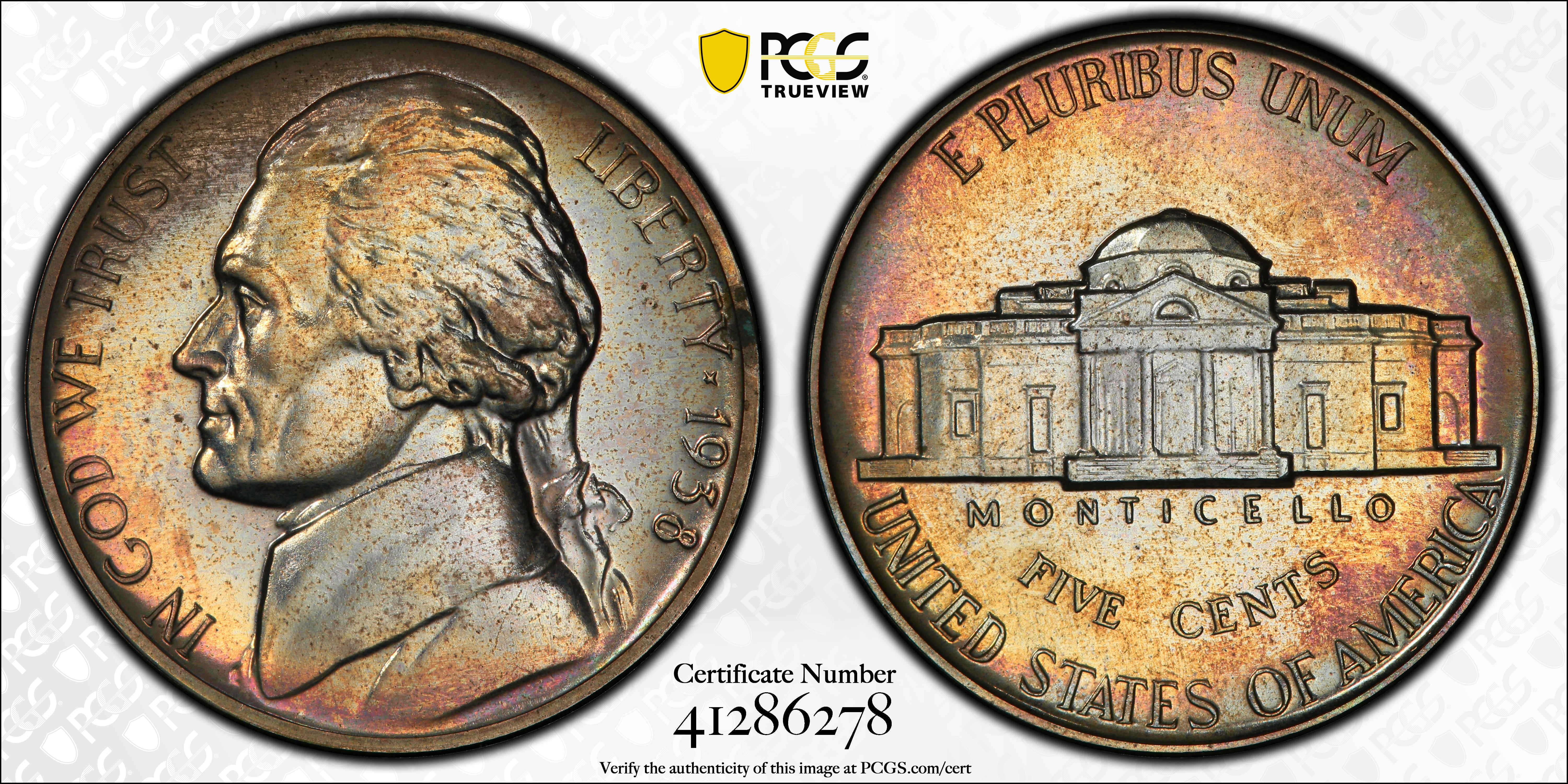 The 1938 Proof Jefferson Nickel has one of the lowest mintages in the series. Most examples tend to come in nice quality, with most ranging in PR64 - PR66 condition. In PR67 it is much scarcer and in PR68 or higher it is very difficult to find.