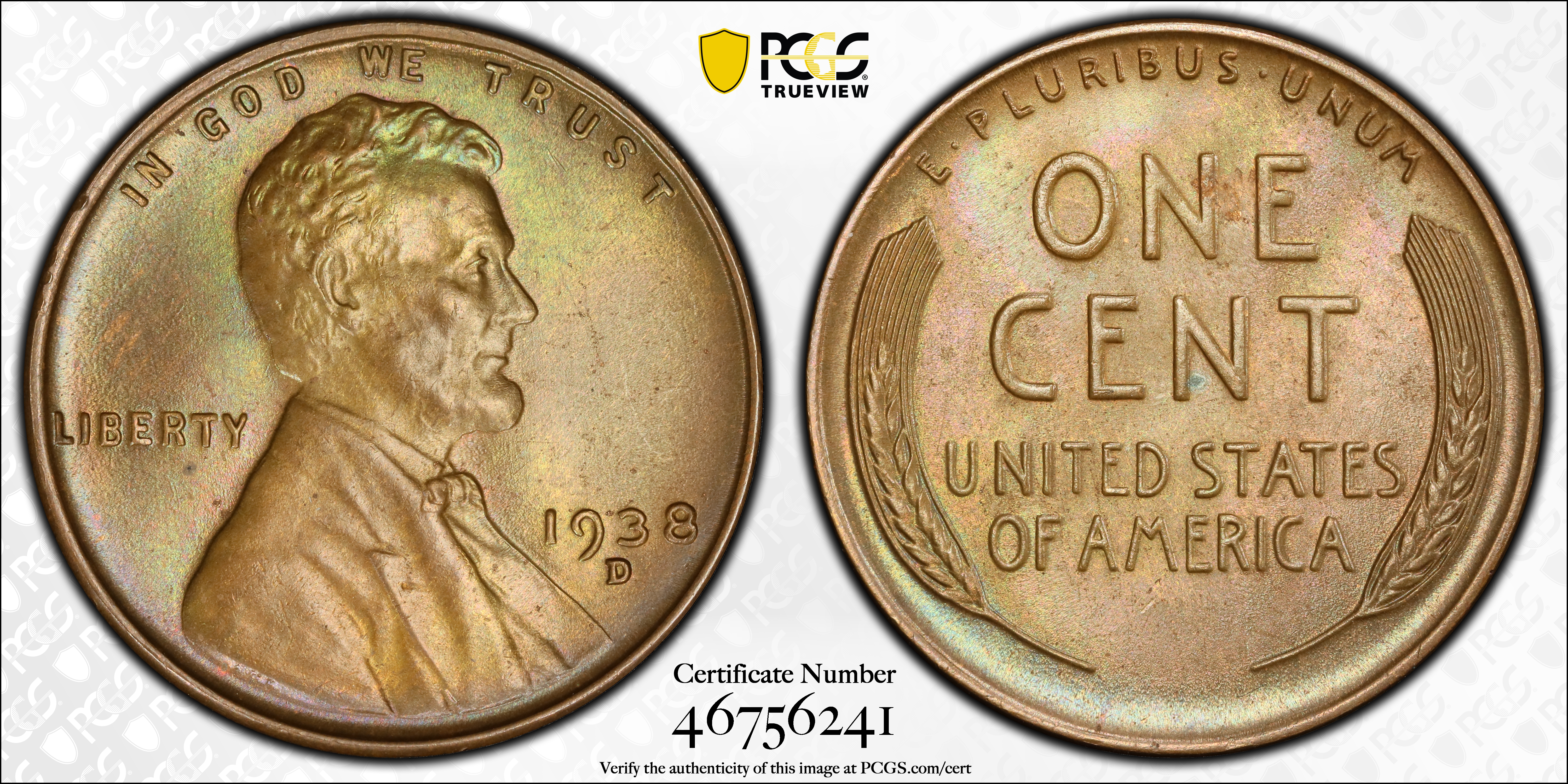 1938-D 1C, BN MS65BN Certification #46756241, PCGS #2669