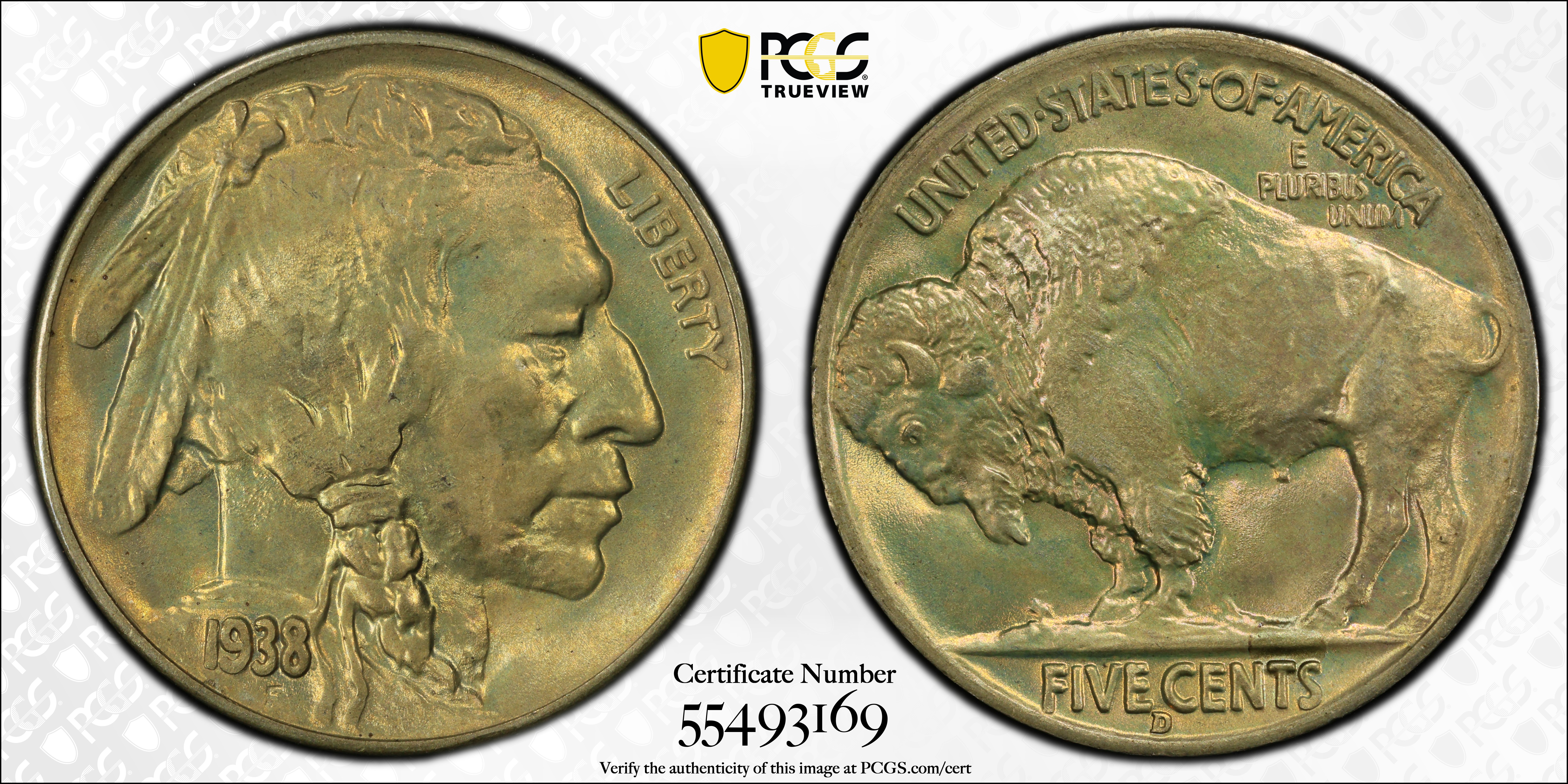 1938-D 5C Buffalo MS67 Certification #55493169, PCGS #3984