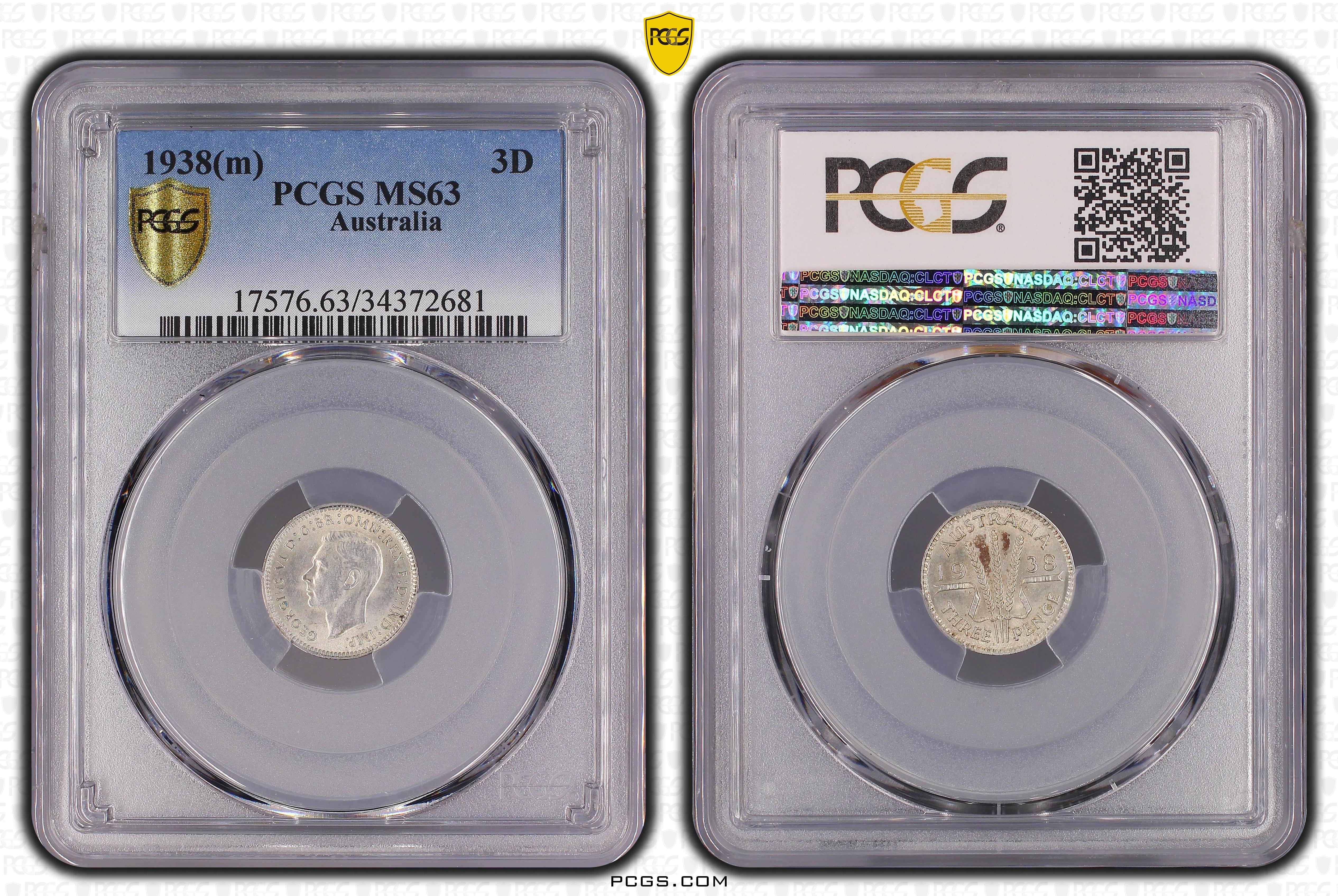 1938(m) 3D MS63 Certification #34372681, PCGS #17576