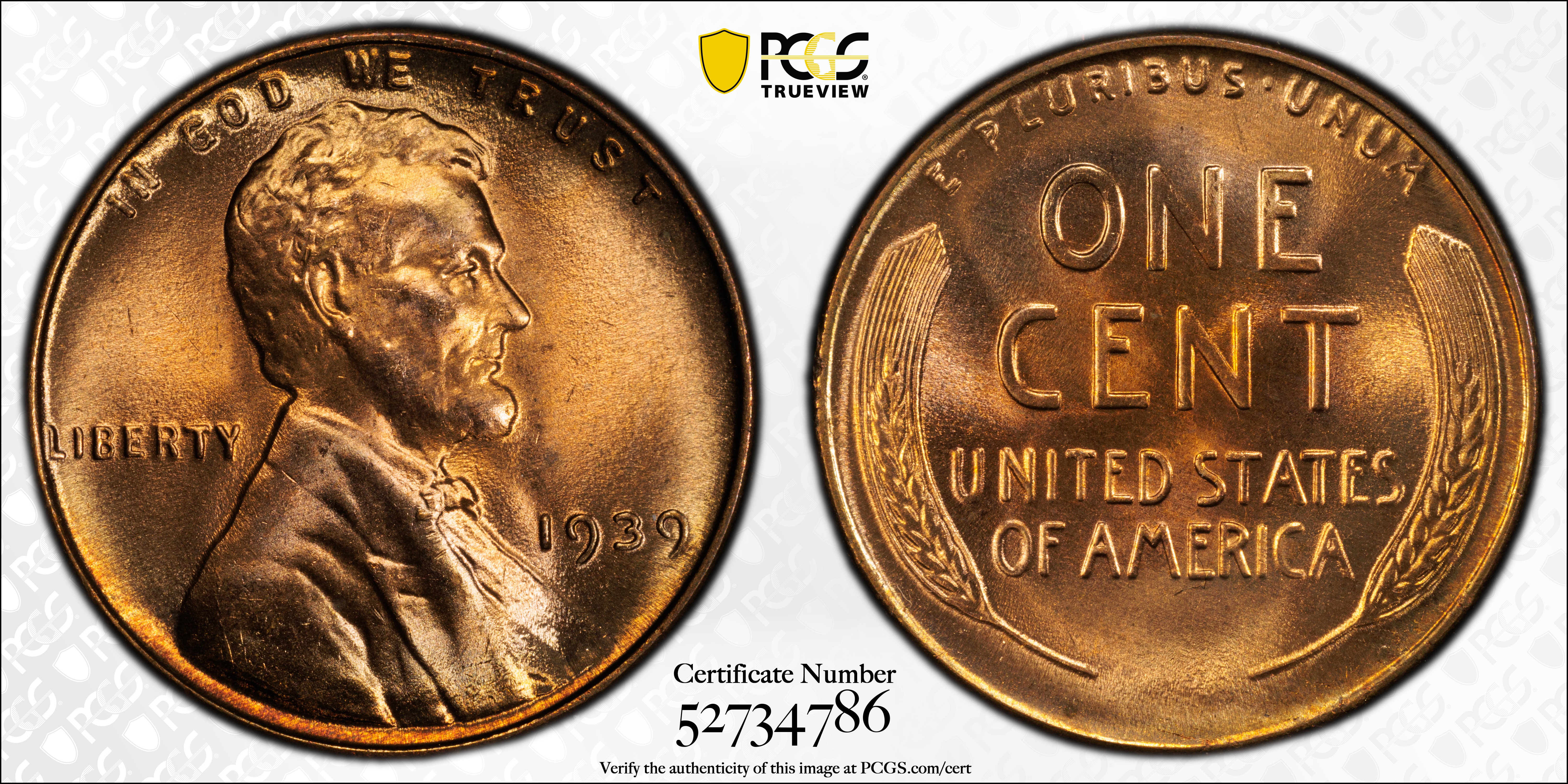 1939 1C, RD MS67+ RD Certification #52734786, PCGS #2677