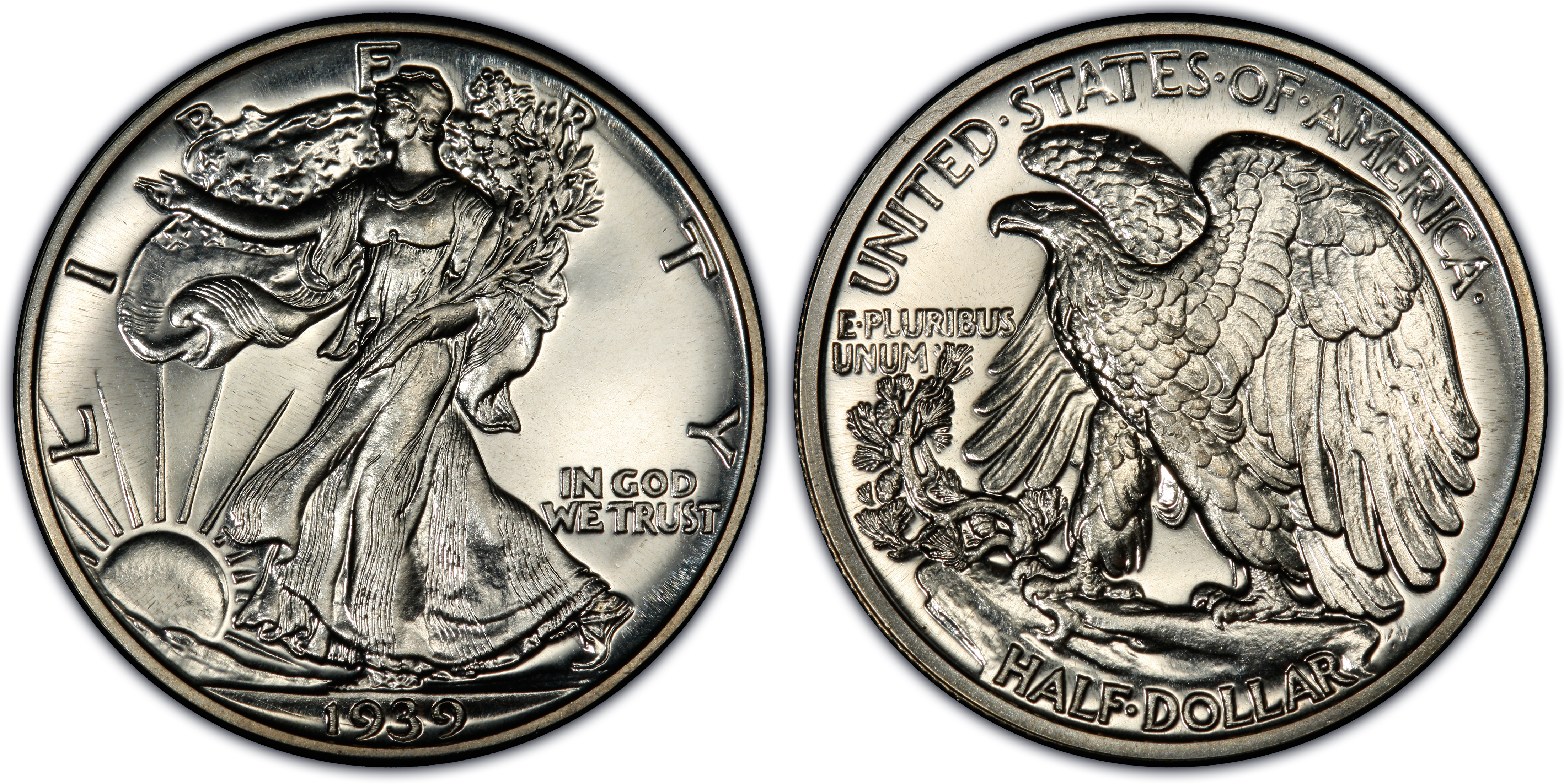 The mintage of the 1939 proof Walker is just slightly higher than the 1938 (8,808 to 8,152), but the 1939 is much easier to locate than the 1938, especially in Gem grades (PR65 or better). It appears more were saved and they were saved with care as the 1939 is often found in truly Superb condition.