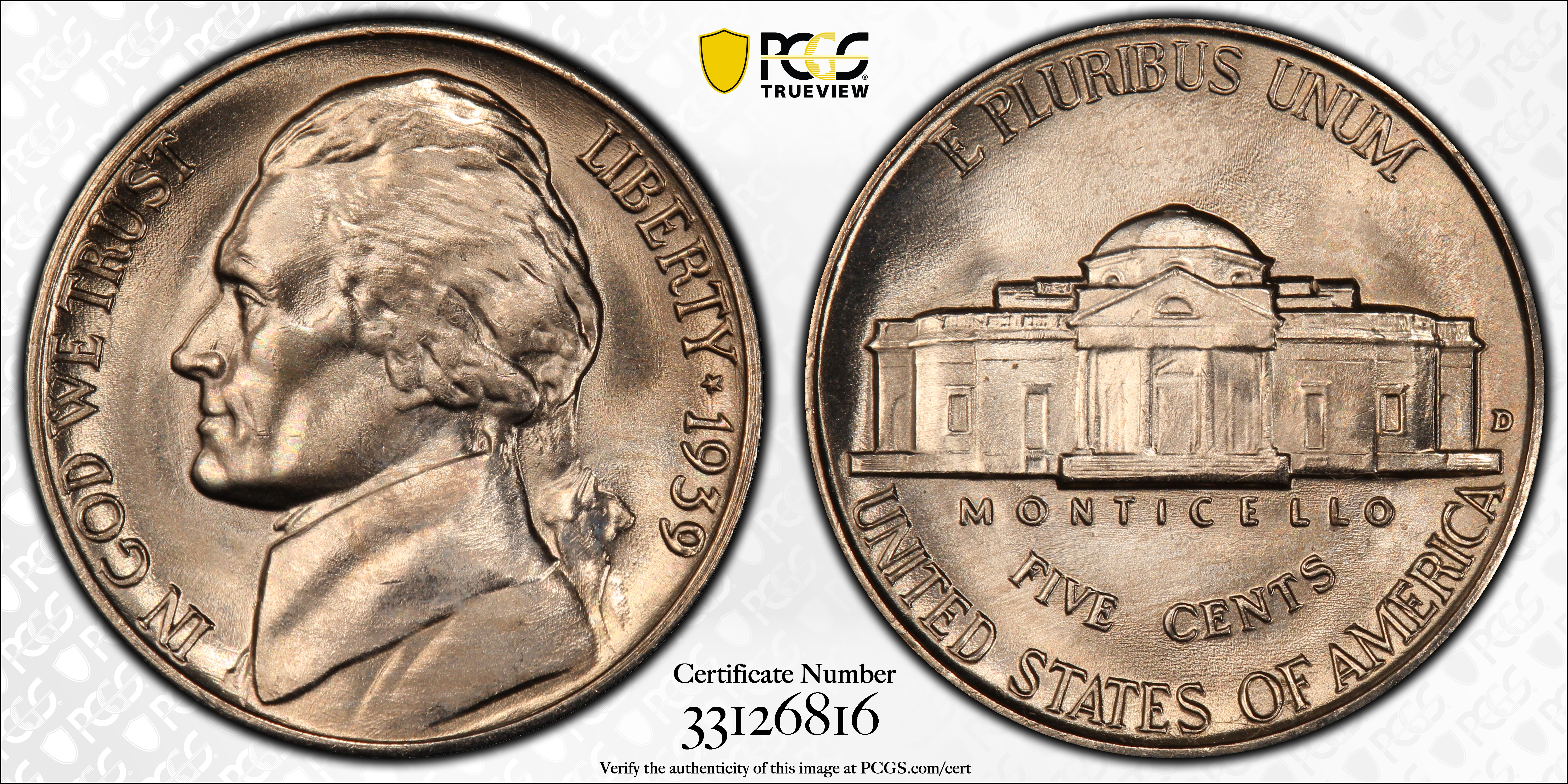 1939-D 5C Reverse of 1938, FS MS67FS Certification #33126816, PCGS #84005
