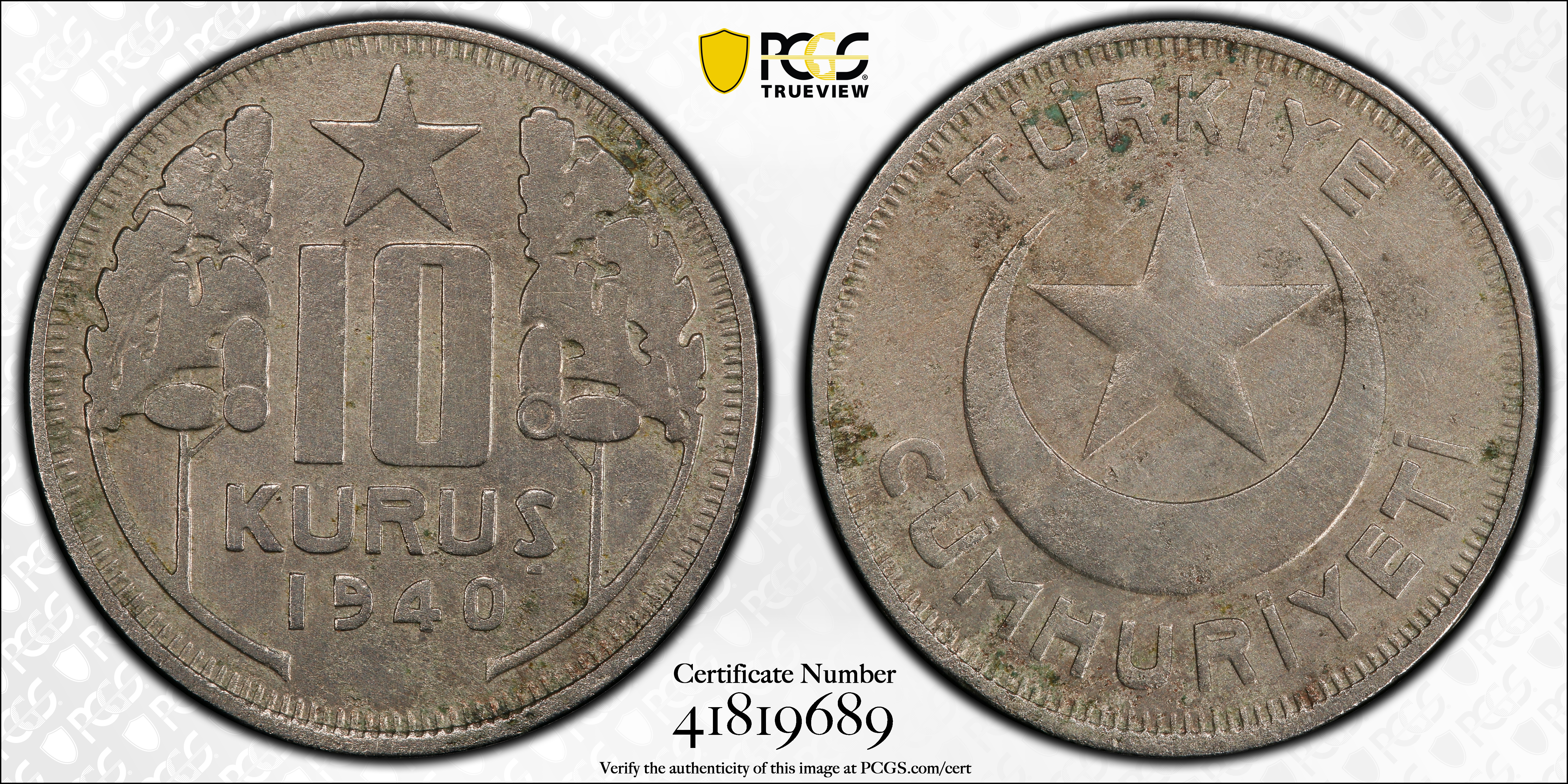 1940 10 Kur N1 Certification #41819689, PCGS #191092