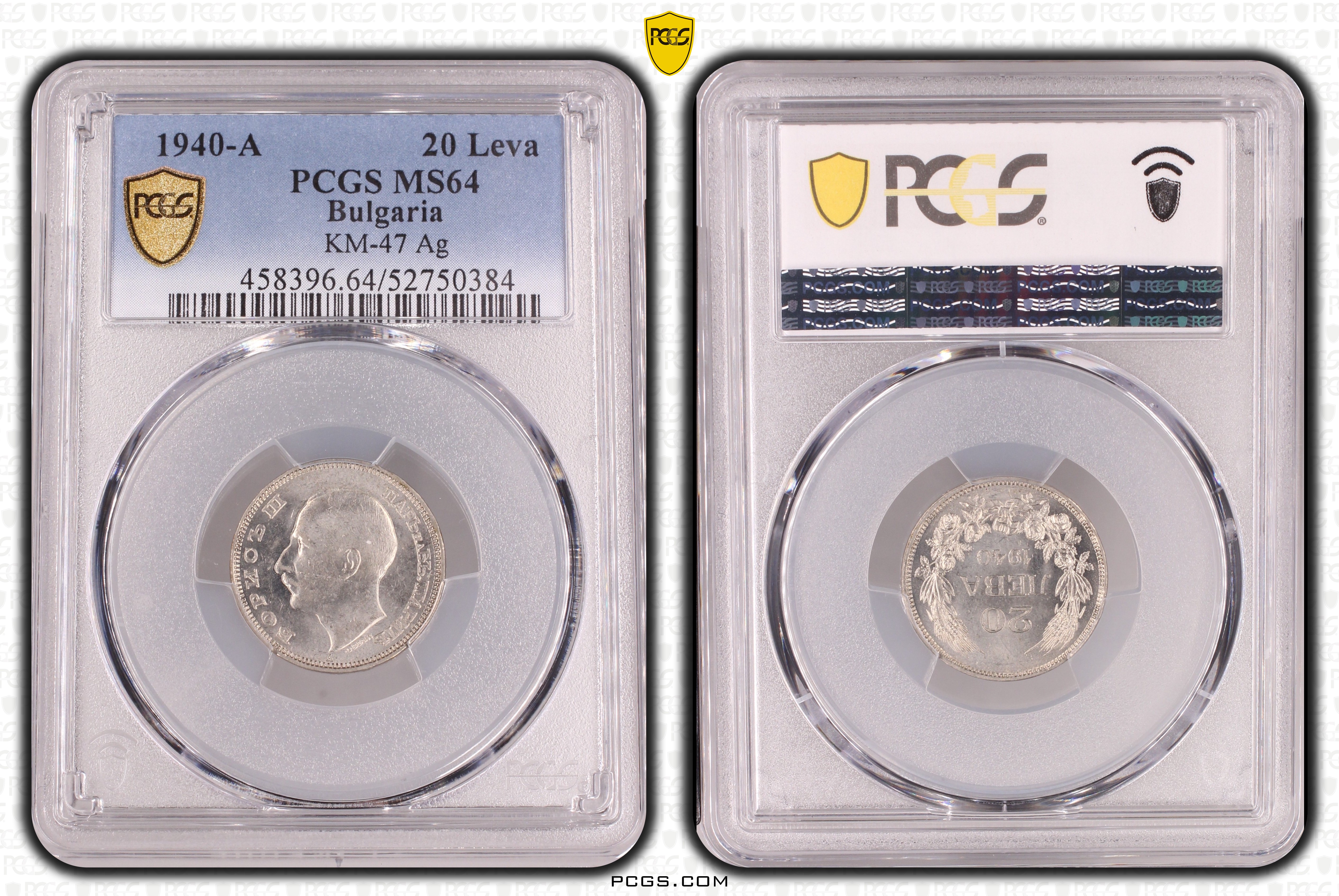 1940-A 20 Leva KM-47 MS64 Certification #52750384, PCGS #458396
