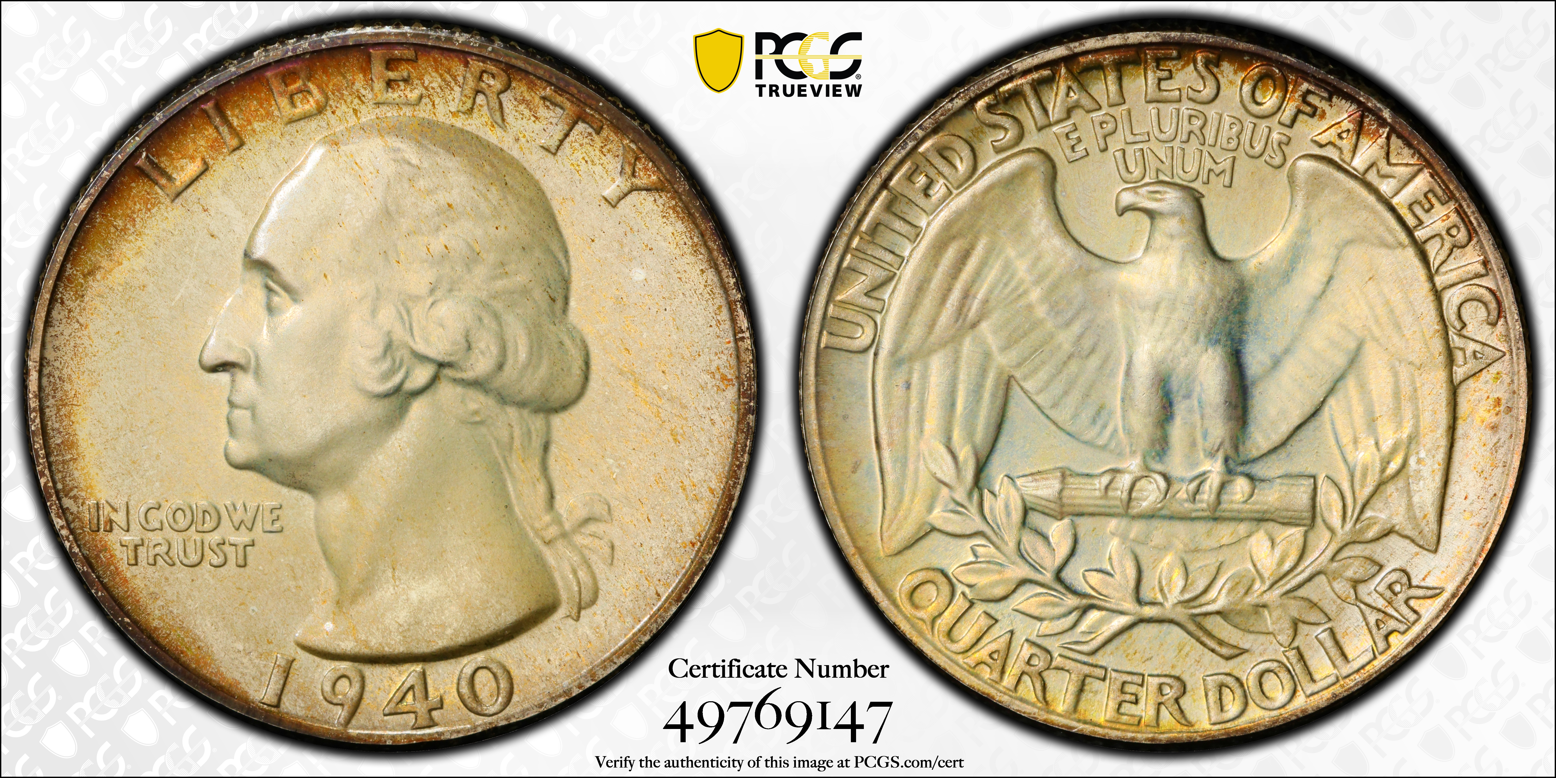 1940 25C PR68 Certification #49769147, PCGS #5979