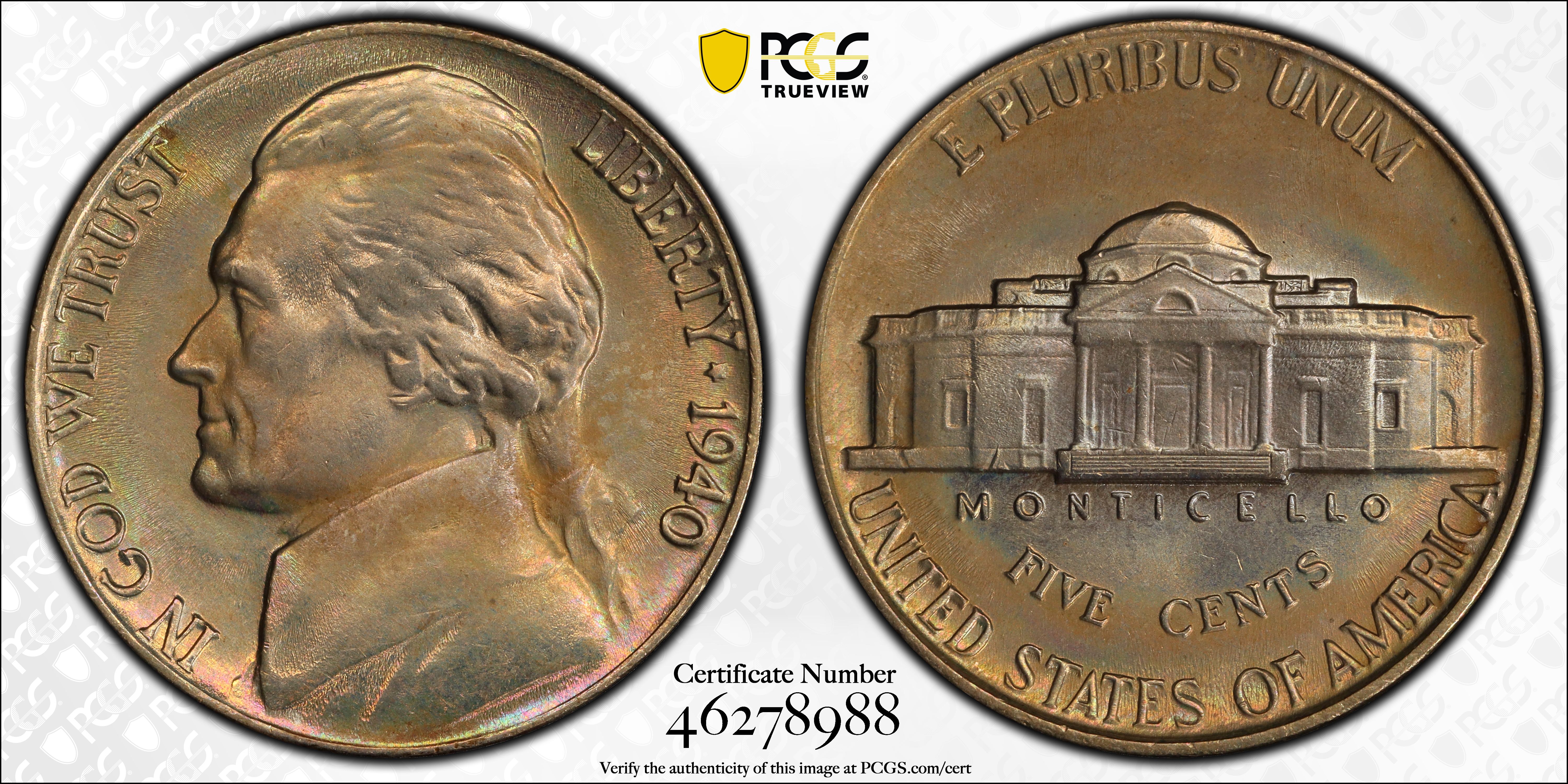 The 1940 Jefferson Nickel is a very common coin in both circulated and Uncirculated grades, and in Full Step and non-Full Step versions. The finest non-Full Step certified by PCGS is a single MS-69; the finest Full Steps include 38 in MS-67FS.