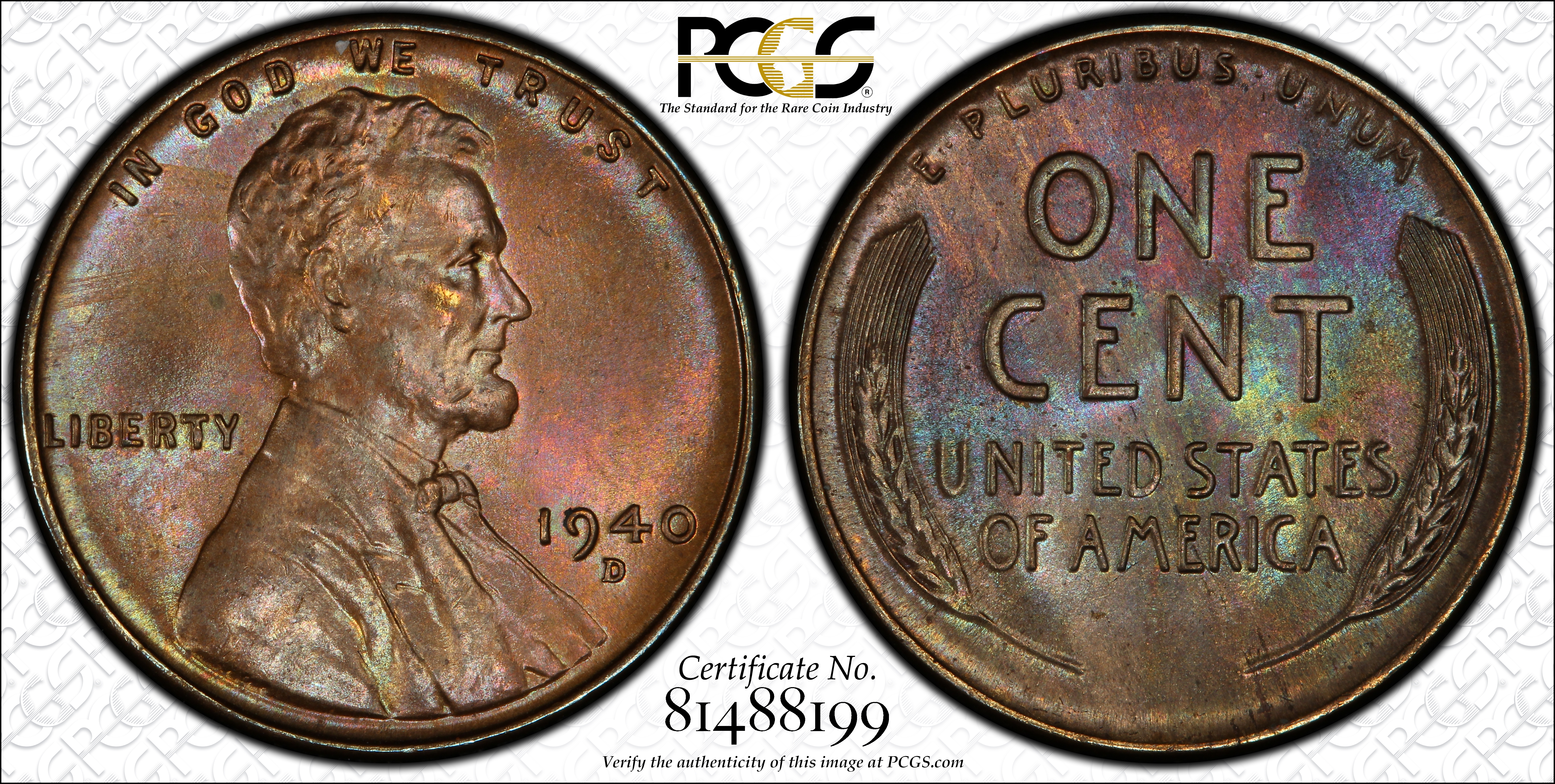 1940-D 1C, RB MS65RB Certification #81488199, PCGS #2688