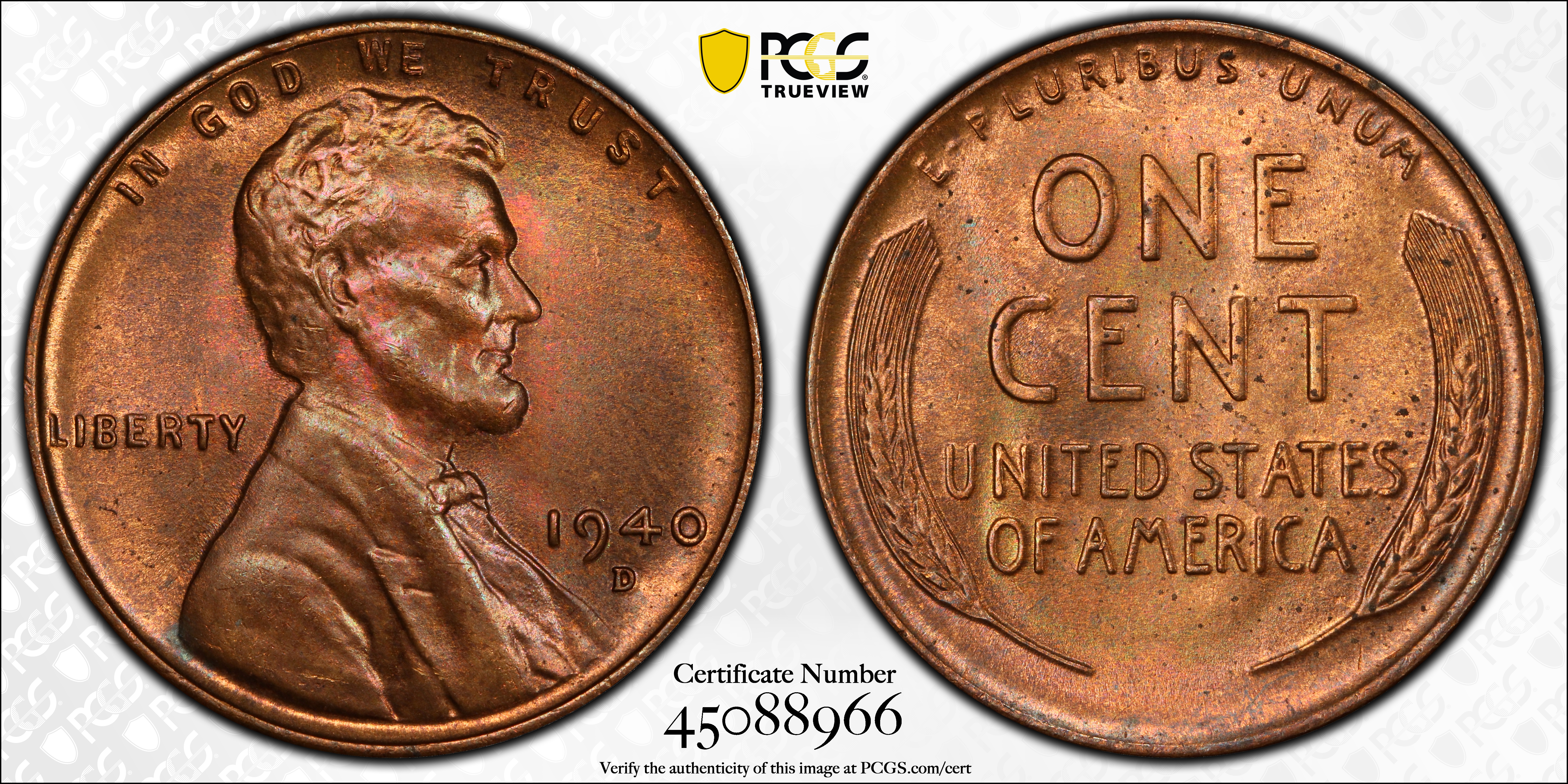 1940-D 1C, RB MS65RB Certification #45088966, PCGS #2688
