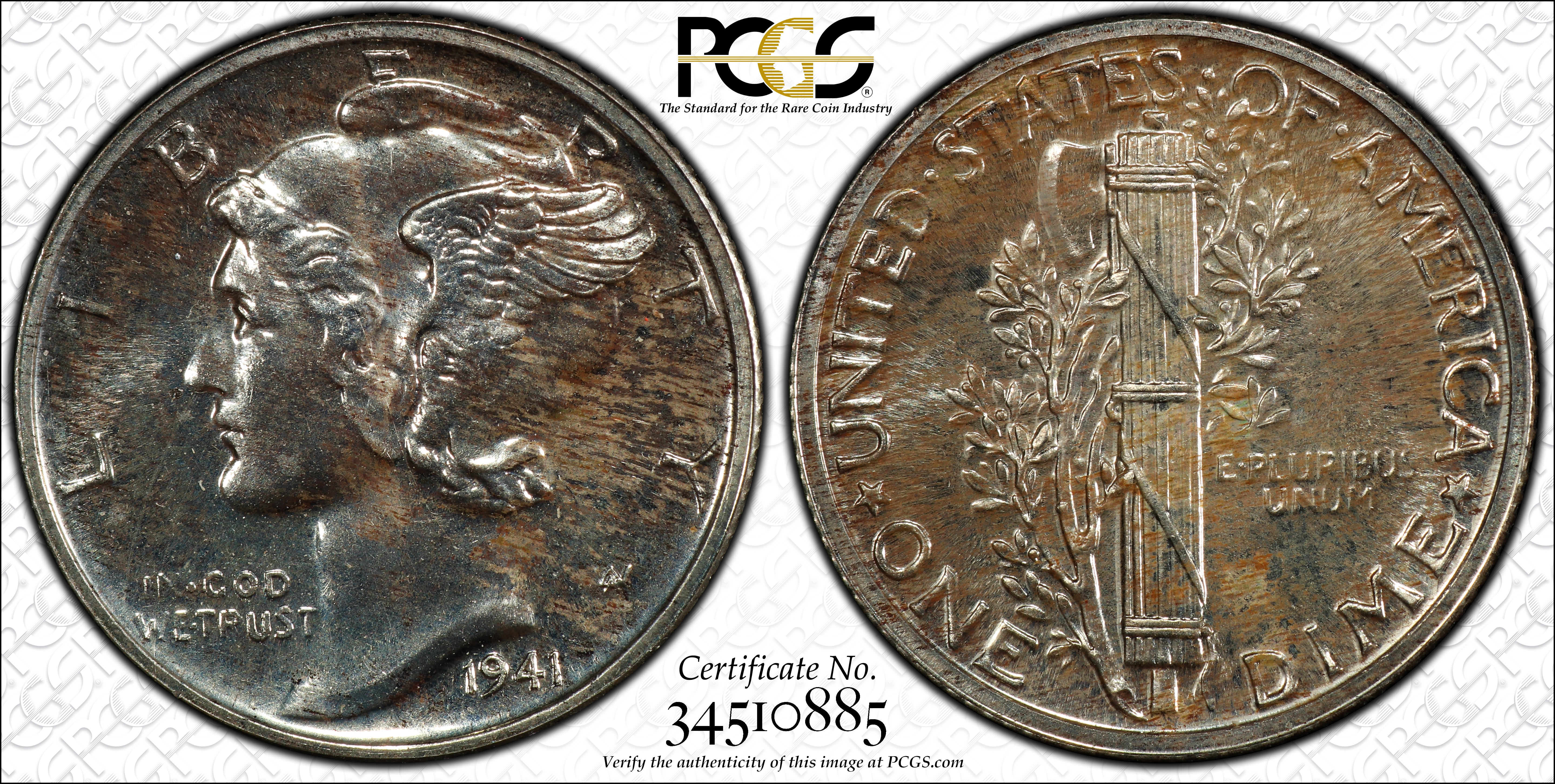 Today, a "brilliant" 1941 Mercury Dime Proof is often the result of professional dipping (PCGS offers a professional restoration service that may improve the eye appeal of your toned coin), as most surviving examples have naturally developed some degree of toning over the decades.