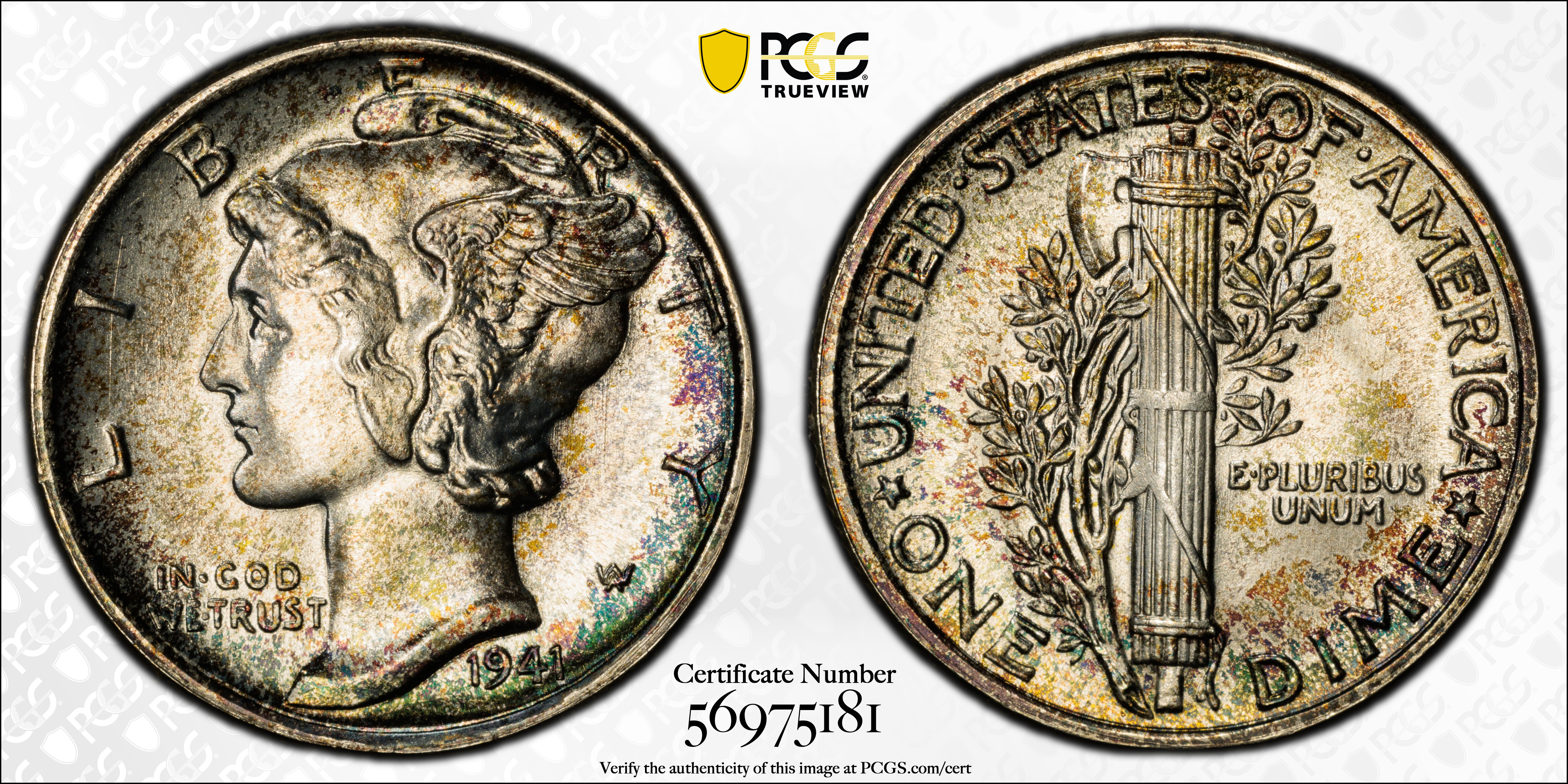 1941 10C MS67+ Certification #56975181, PCGS #5028