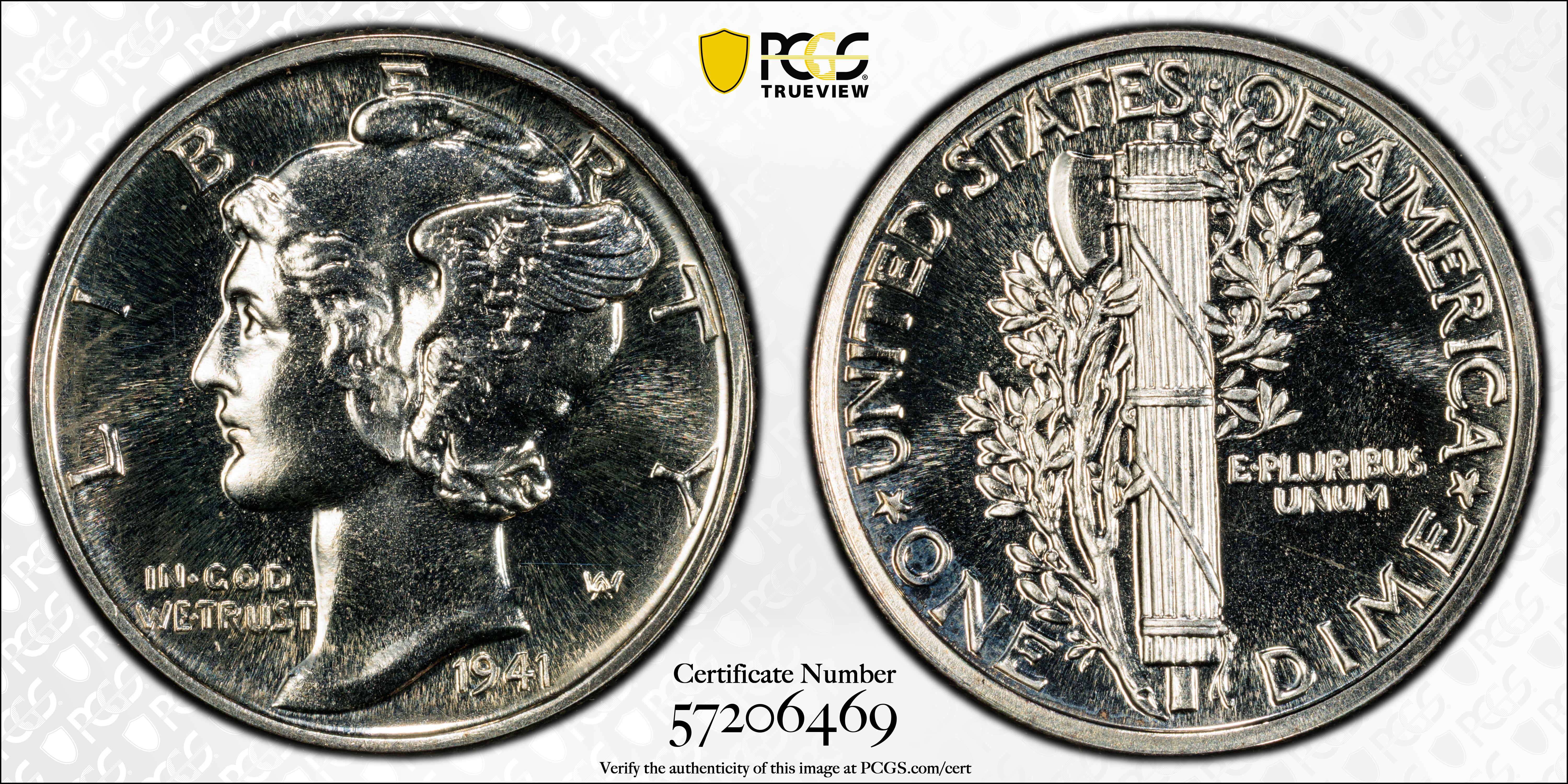 Today, a "brilliant" 1941 Mercury Dime Proof is often the result of professional dipping (PCGS offers a professional restoration service that may improve the eye appeal of your toned coin), as most surviving examples have naturally developed some degree of toning over the decades.