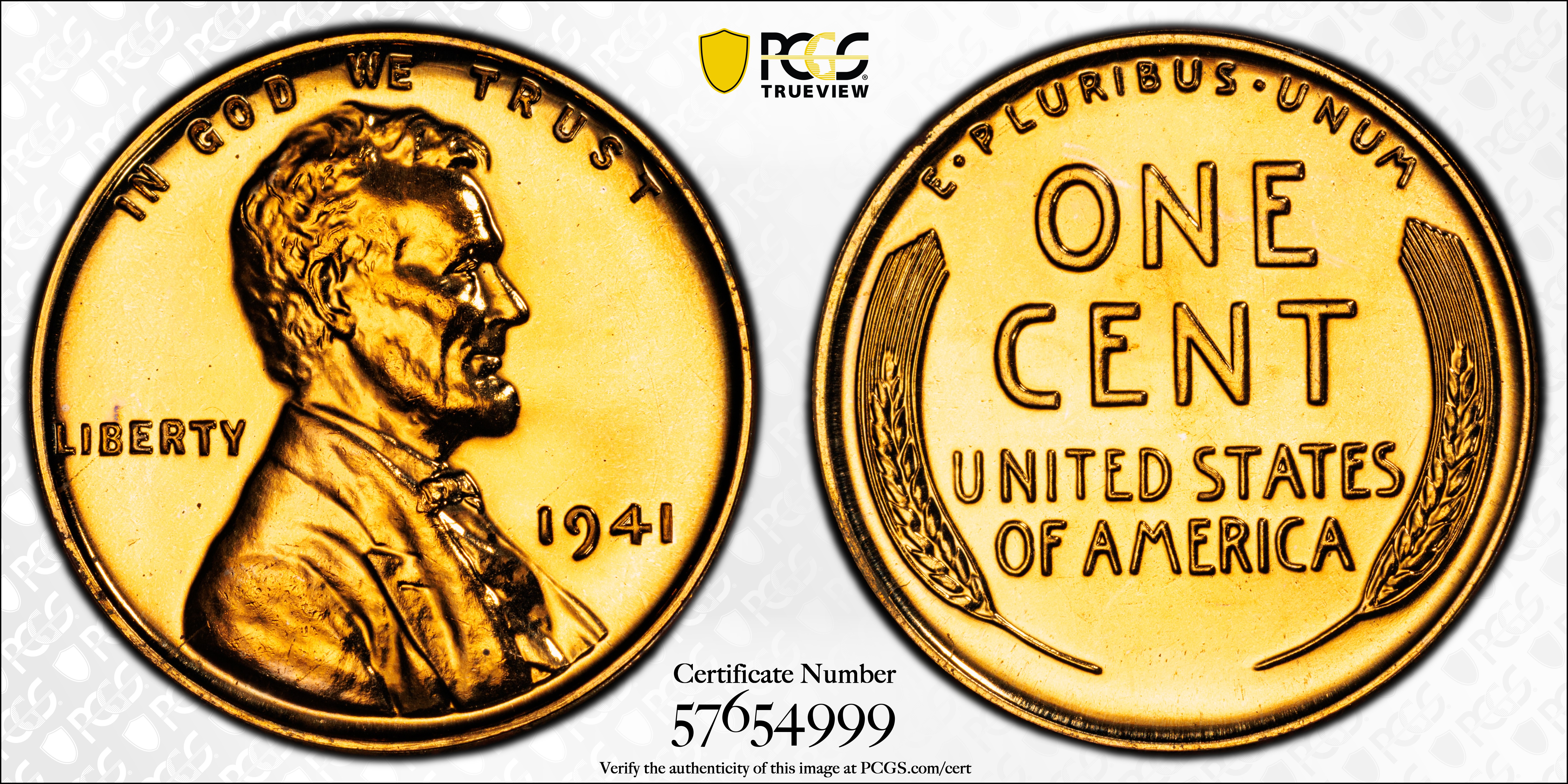 1941 1C, RD PR67RD Certification #57654999, PCGS #3350