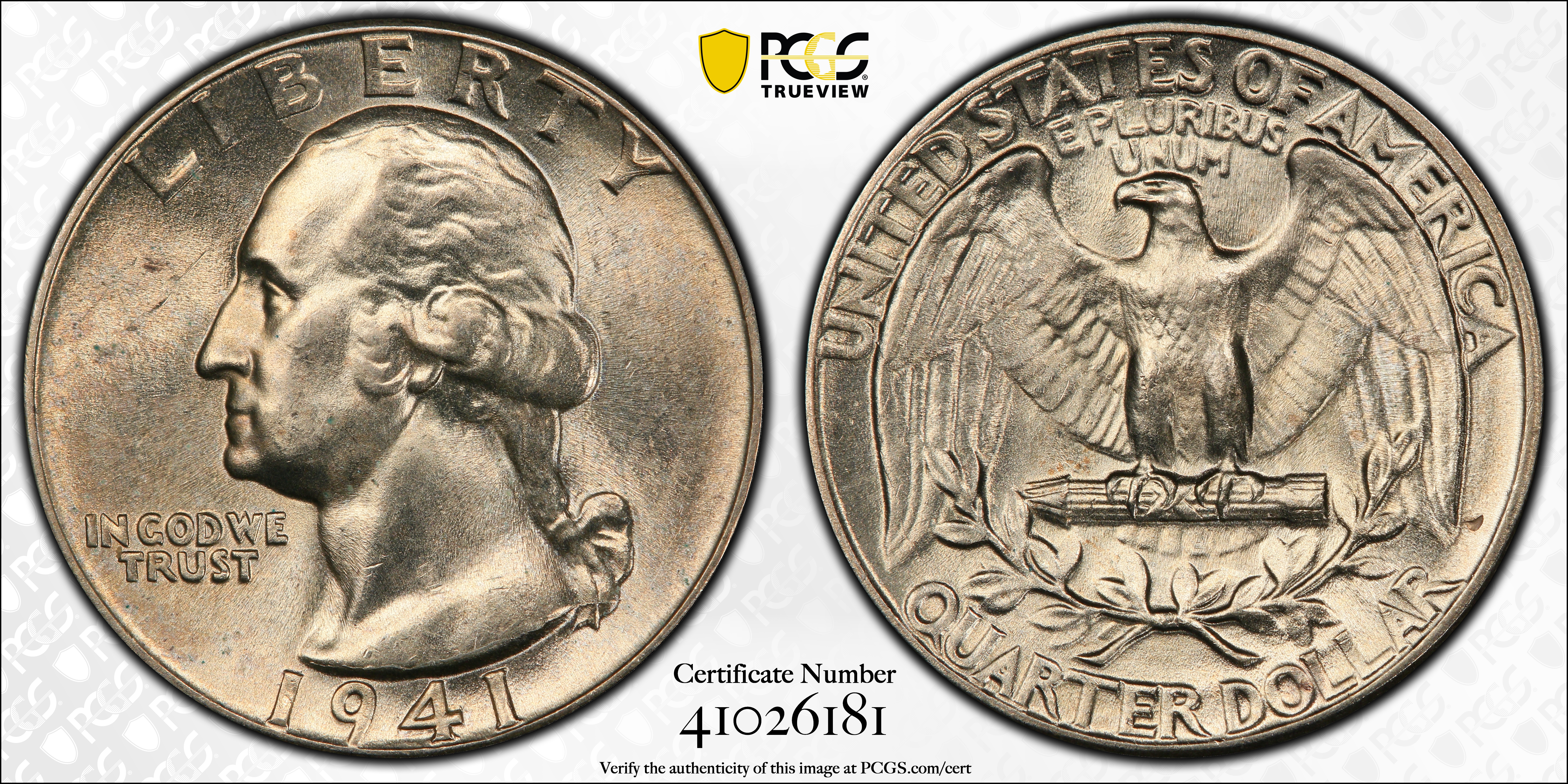 1941 25C MS62 Certification #41026181, PCGS #5814