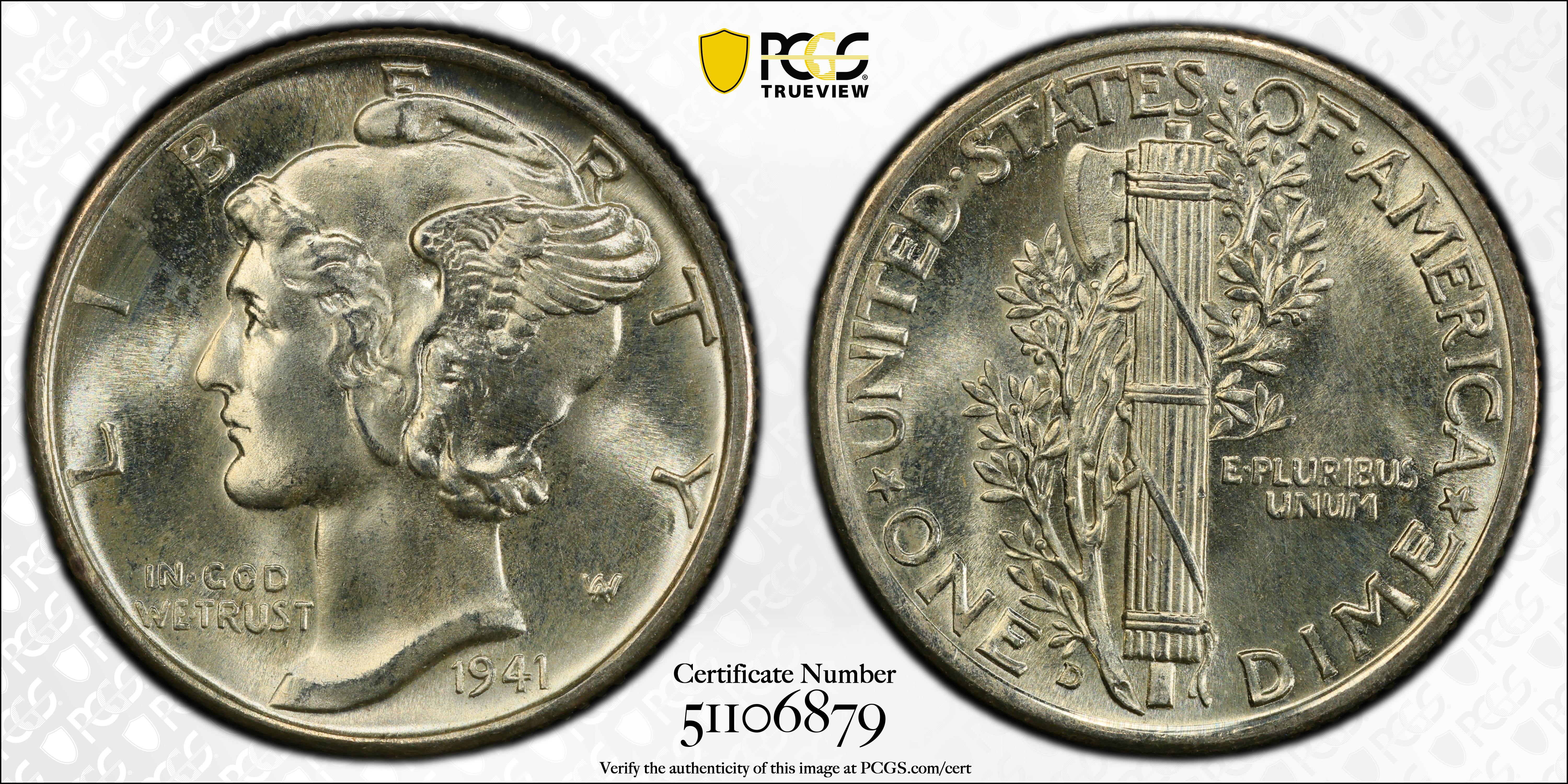 1941-D 10C, FB MS66FB Certification #51106879, PCGS #5031