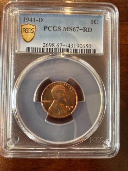 1941-D 1C, RD MS67+ RD Certification #43190650, PCGS #2698