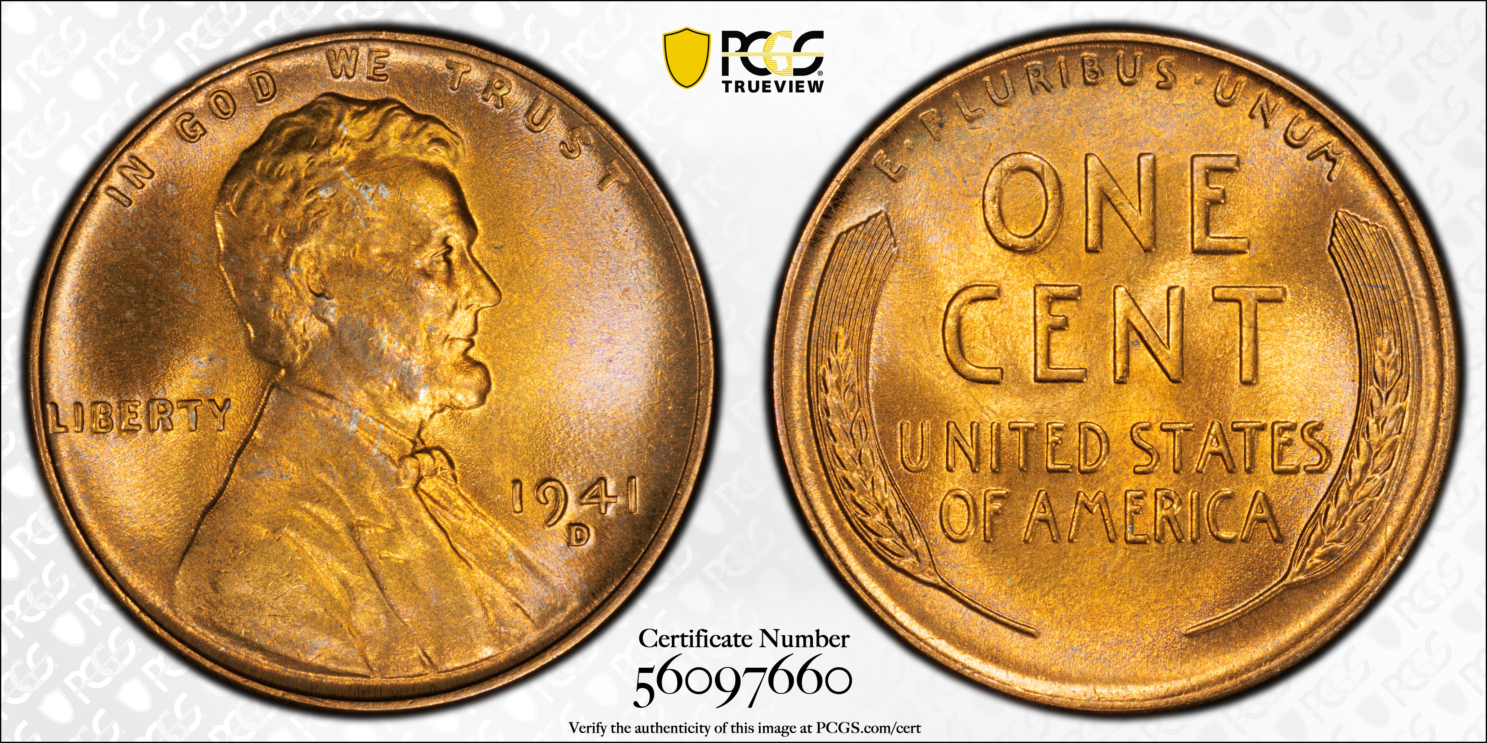 The 1941-D Lincoln Cent is very common in all grades. In fact, as of November 2011, PCGS listed nearly one thousand examples in MS-66 Red. The finest examples certified by PCGS are in MS-67 Red and those, too, can be found with relative ease. This date comes with a strong strike and great eye appeal.