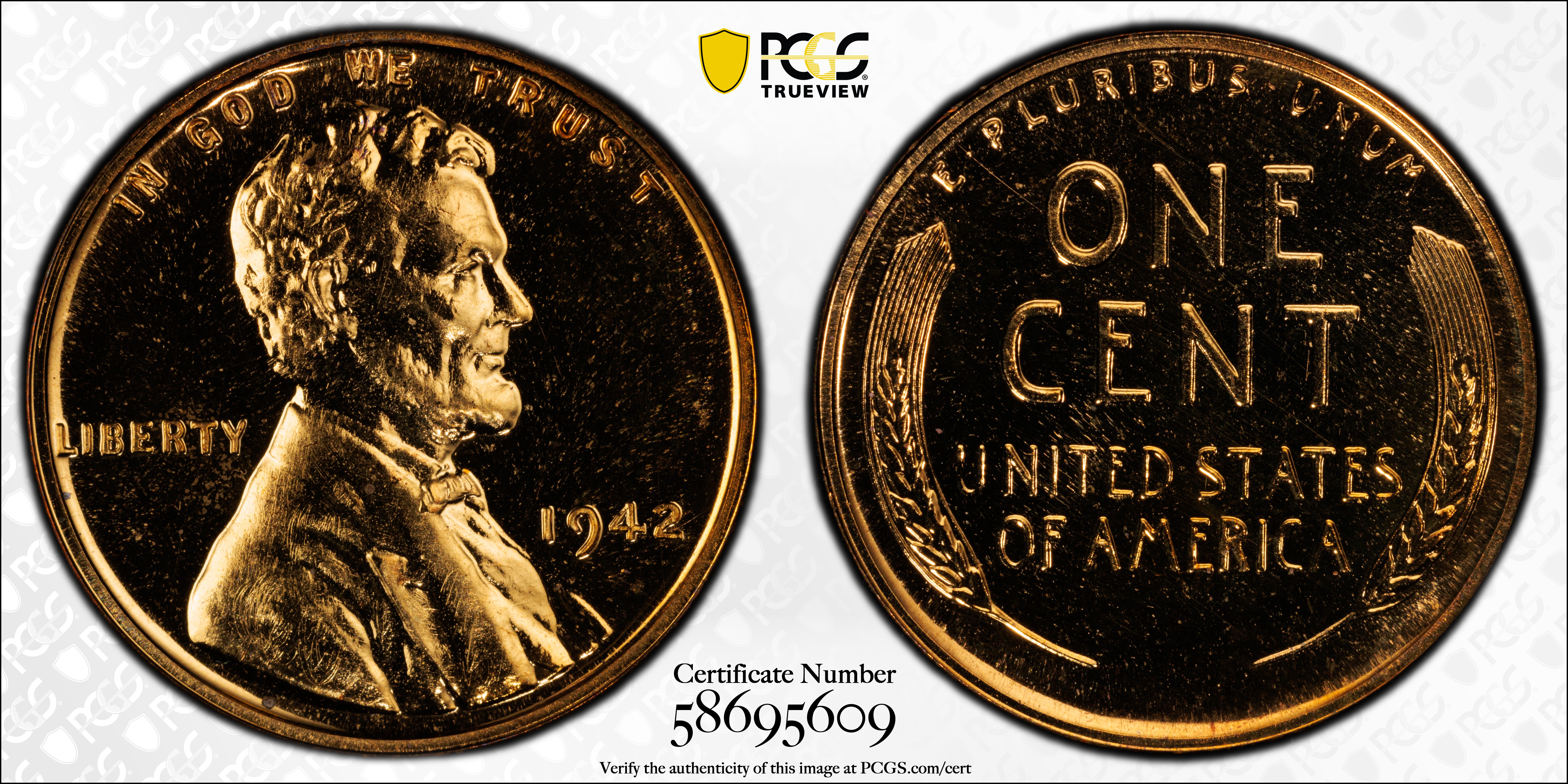 1942 1C, RD PR66RD Certification #58695609, PCGS #3353